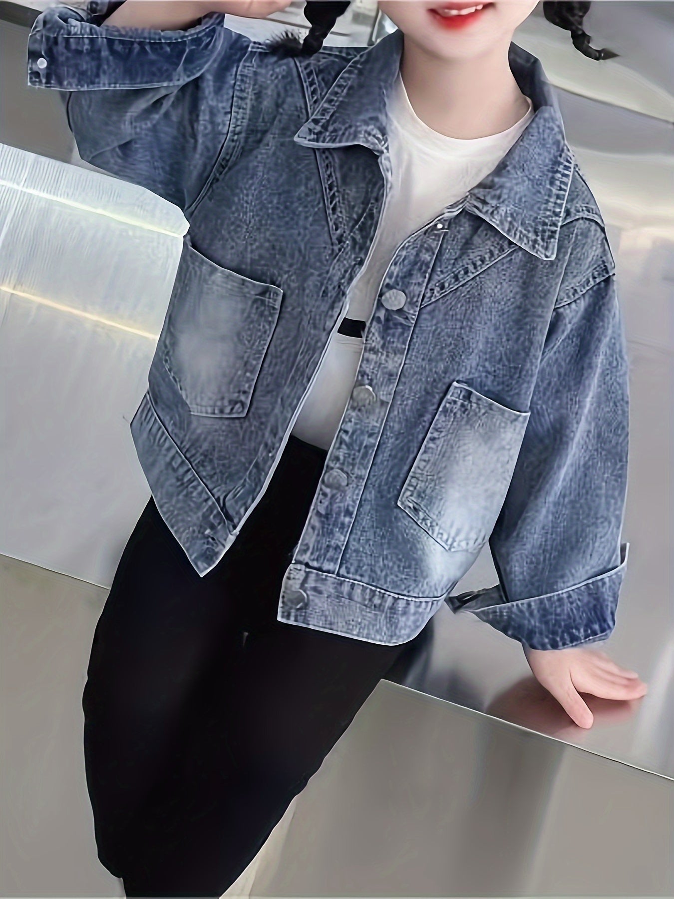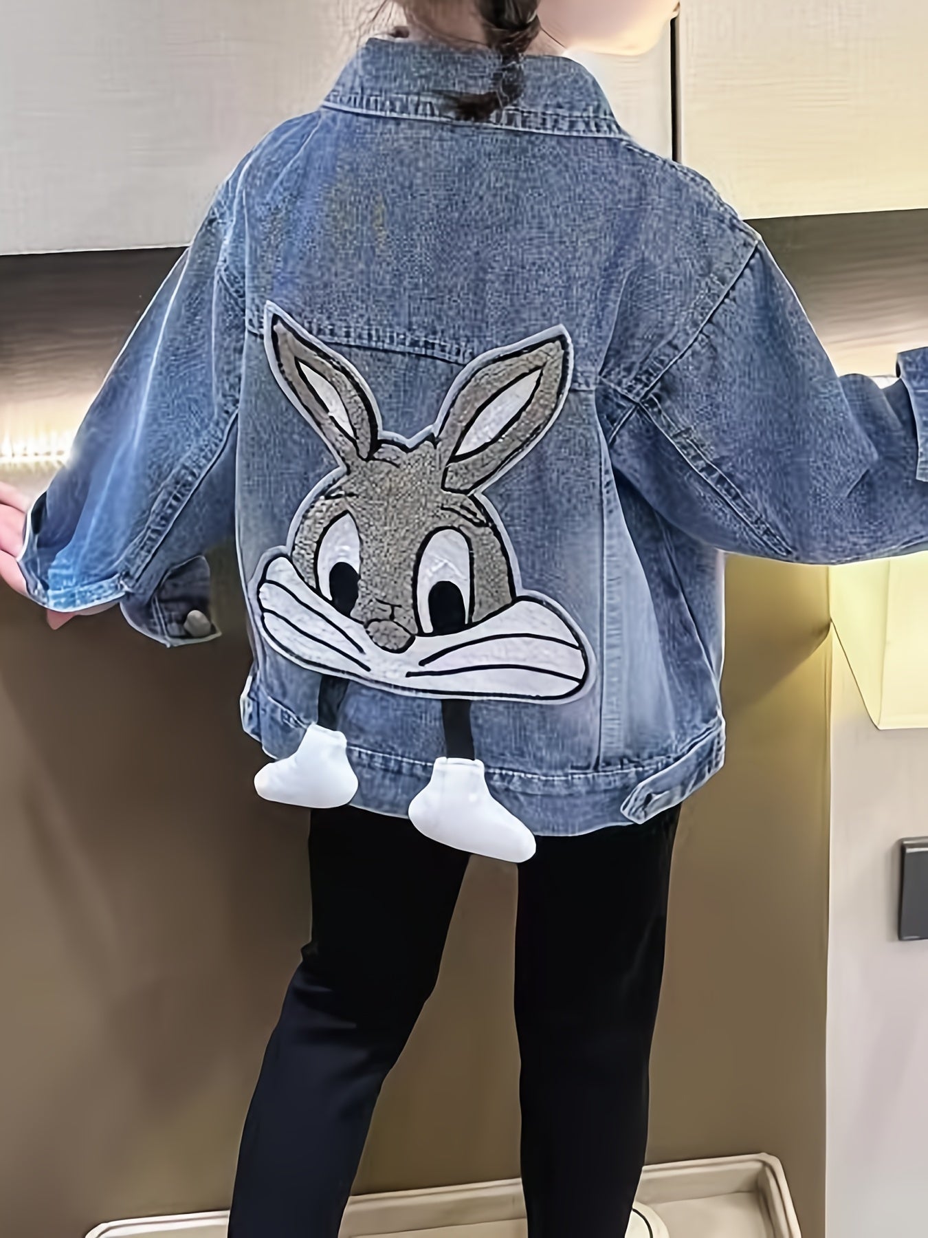 Girls Denim Jacket with 3D Bunny Applique Long Sleeve Casual Spring Fall