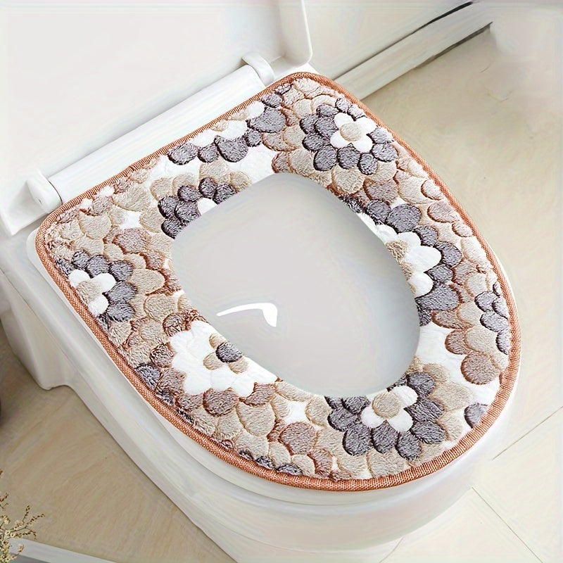 Coral Velvet Toilet Seat Cover Washable Knit Cotton Universal Fit Cushion