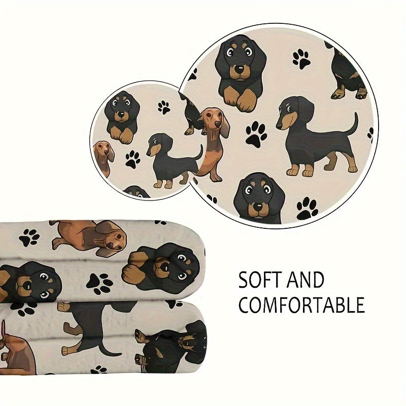 Dachshund Dog Print Fleece Blanket All-Season Machine Washable Polyester Throw