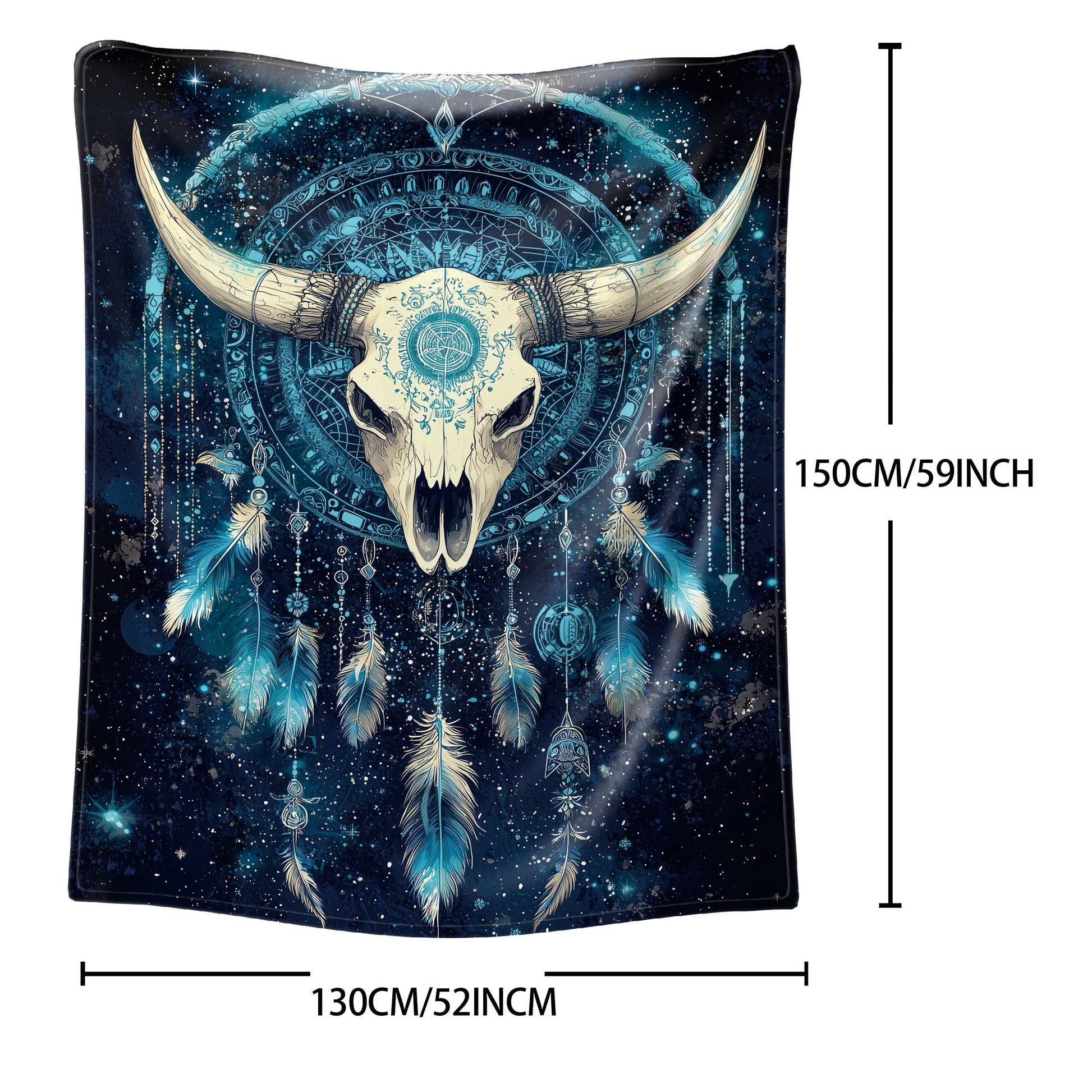 Starry Sky Bull Skull Dreamcatcher Throw Blanket Flannel All-Season Polyester
