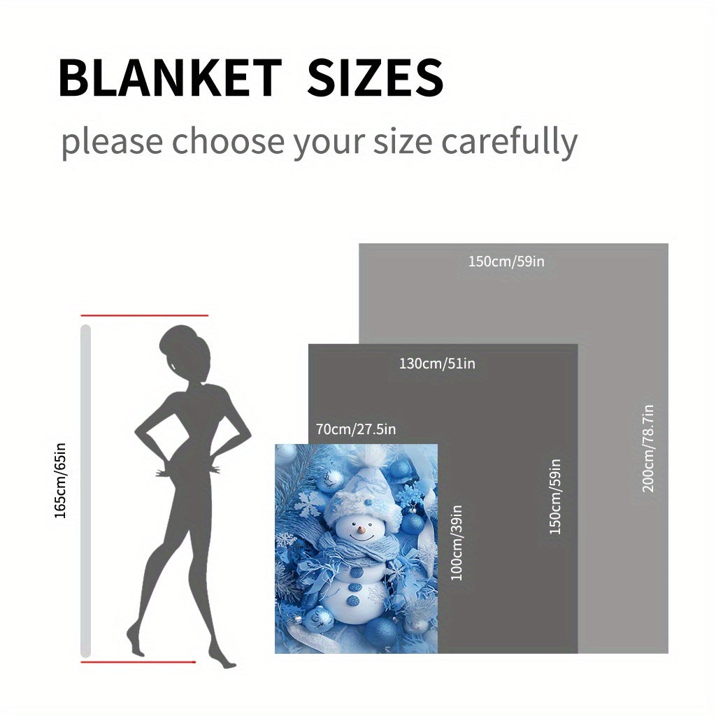 Warm Flannel Fleece Blanket with Snowman Blue Print for Cozy Use All Seasons
