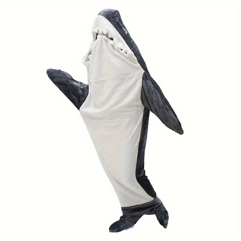 Shark-Shaped Plush Fleece Sleeping Bag for Kids Warm Cozy Blanket Gray White