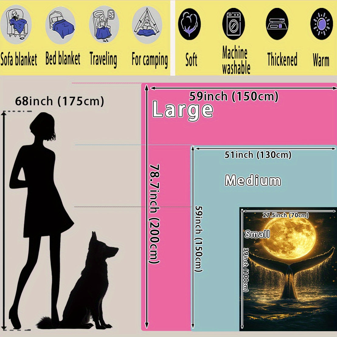 Flannel Digital Print Whale Tail Moon Throw Blanket Polyester All-Purpose Comfort