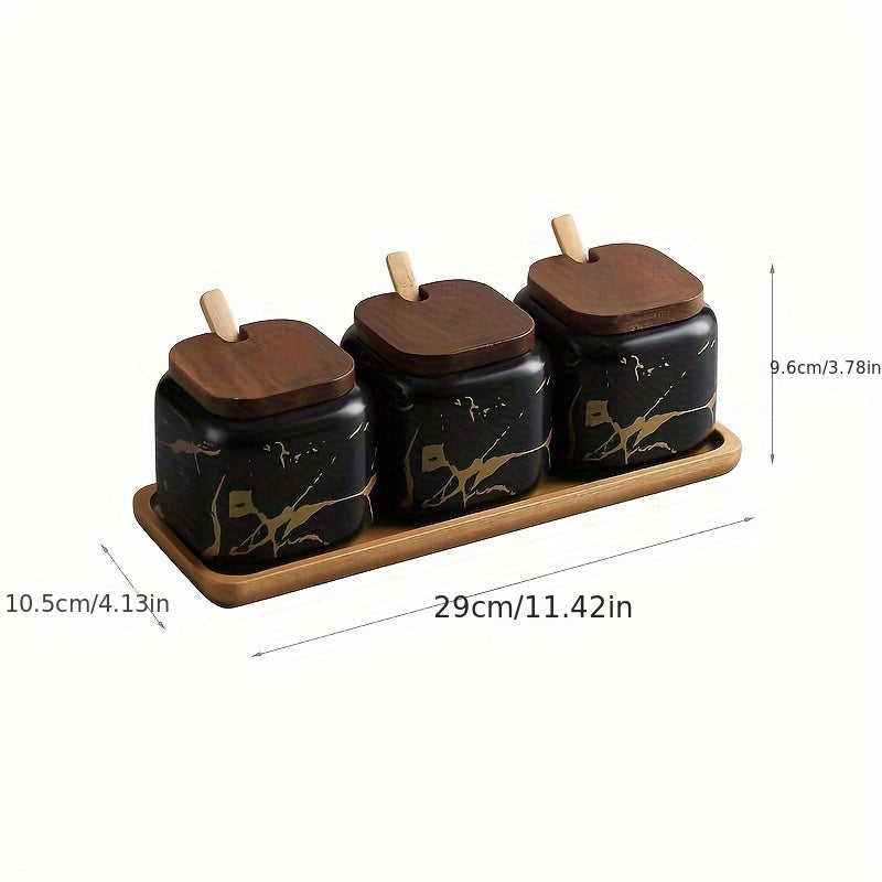 Ceramic Spice Set with Salt and Pepper Jars and Wooden Lids for Kitchen Decor