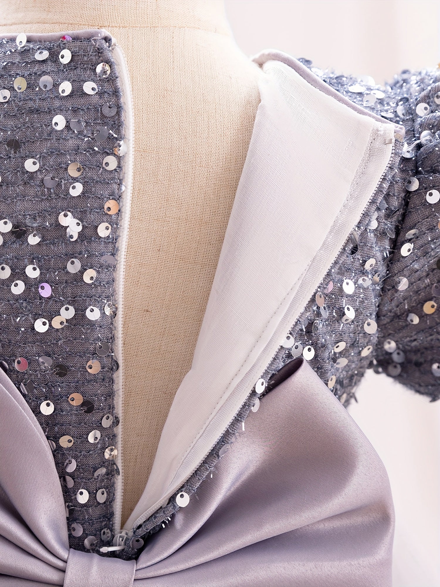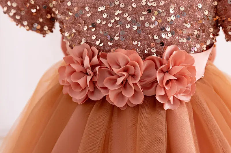 Girls Sparkling Midi Dress with 3D Flower Decor Sequin and Belt for Weddings Parties