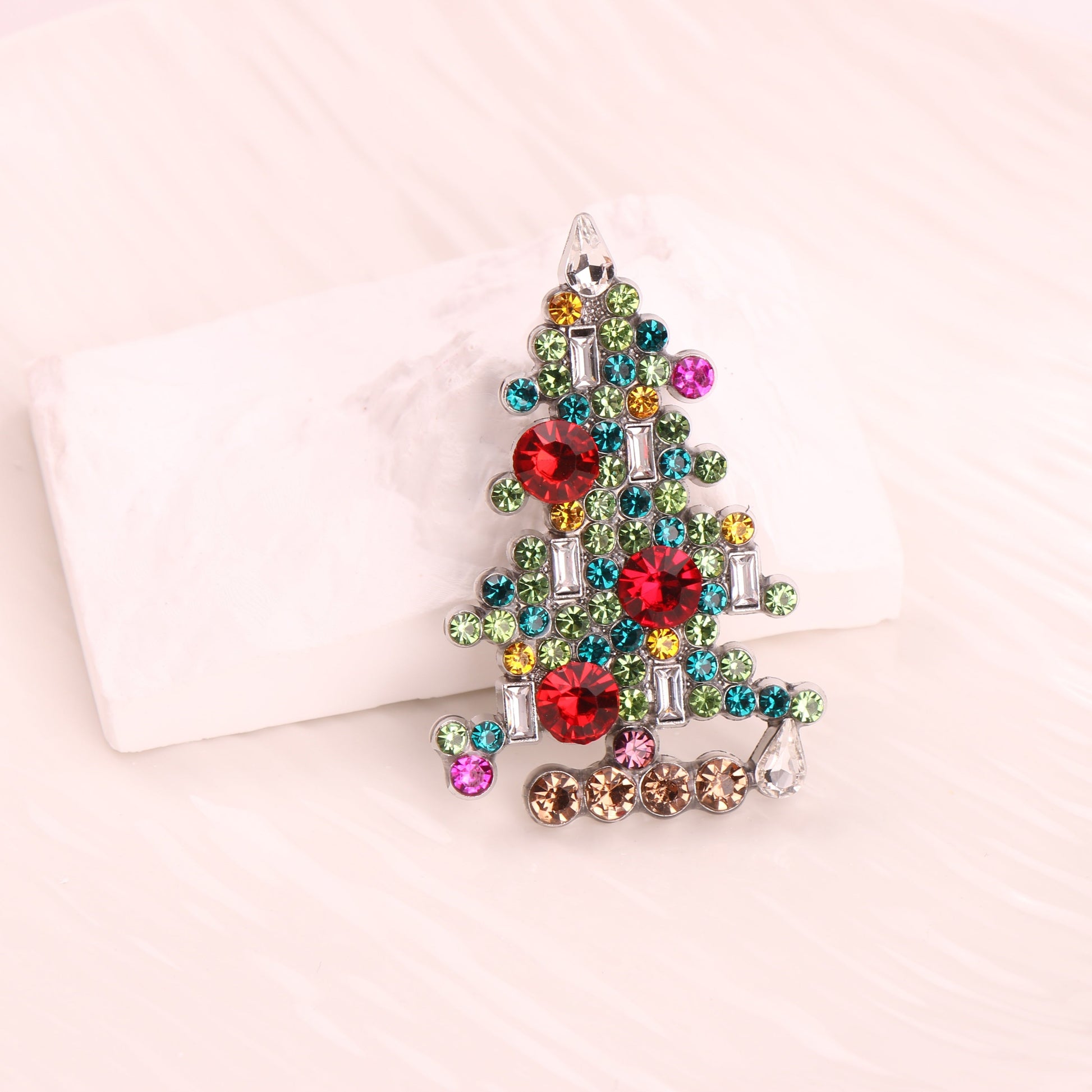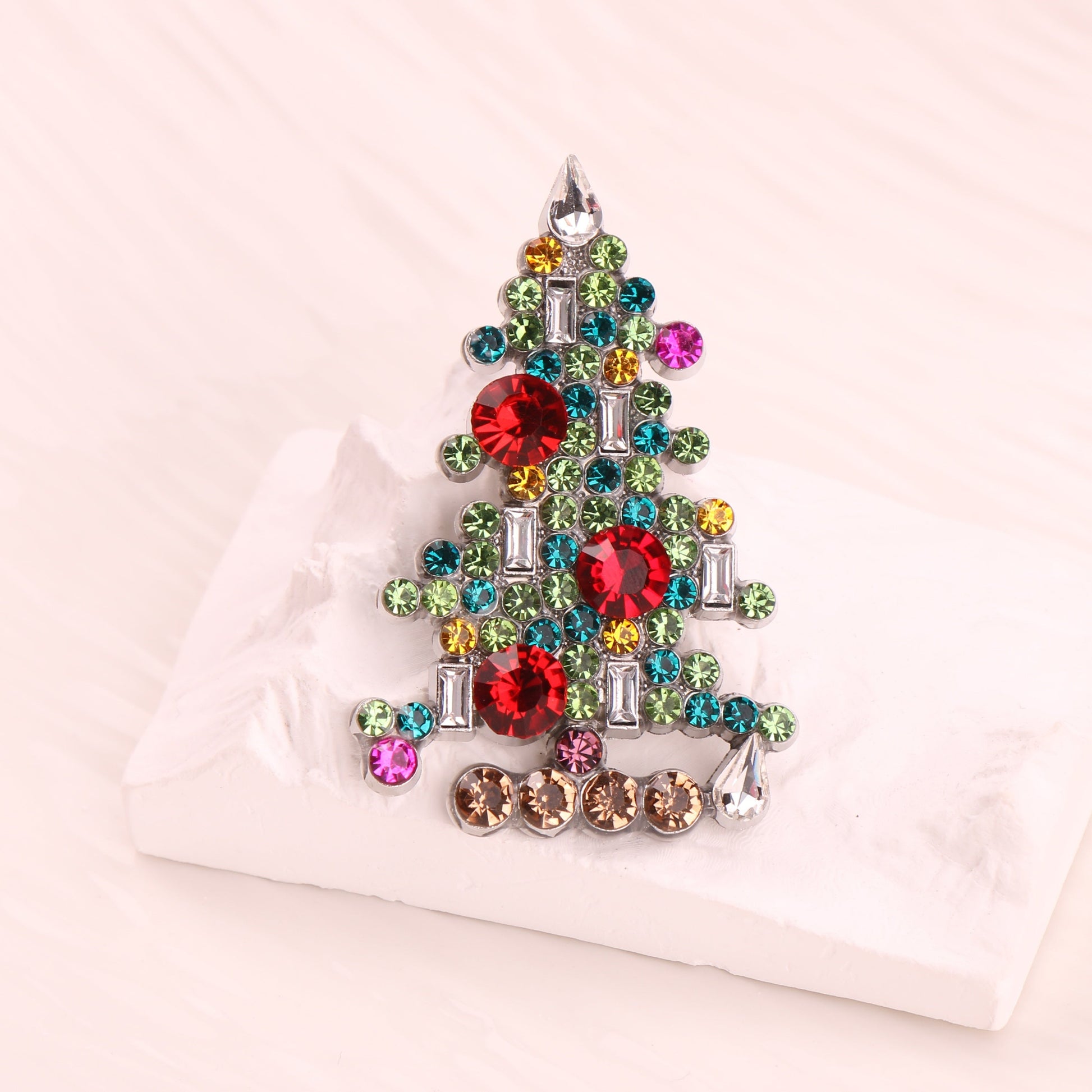 Sparkling Rhinestone Christmas Tree Brooch Festive Holiday Corsage Pin