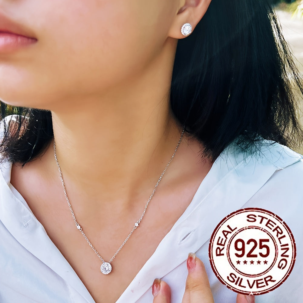 Women's Jewelry Set Necklace and Stud Earrings Sterling Silver Cubic Zirconia