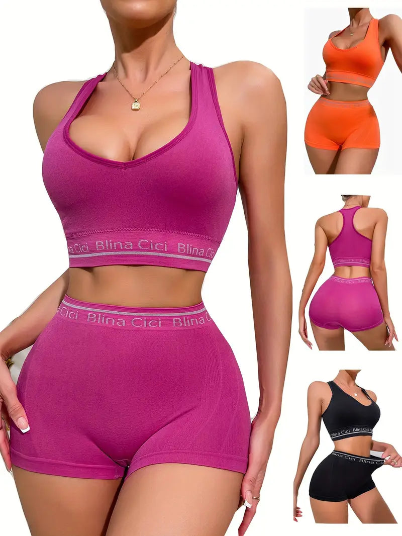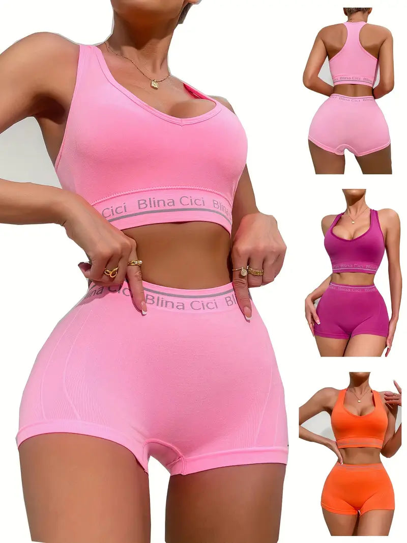 Sporty Lingerie Set Racerback Bra and Boxer Shorts for Jogging or Gym