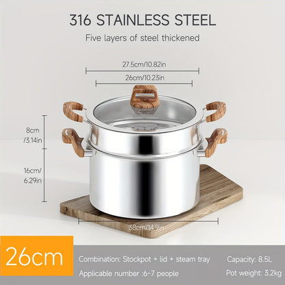 Stainless Steel Soup Pot 26cm 8.5L Non-Stick Induction Cookware