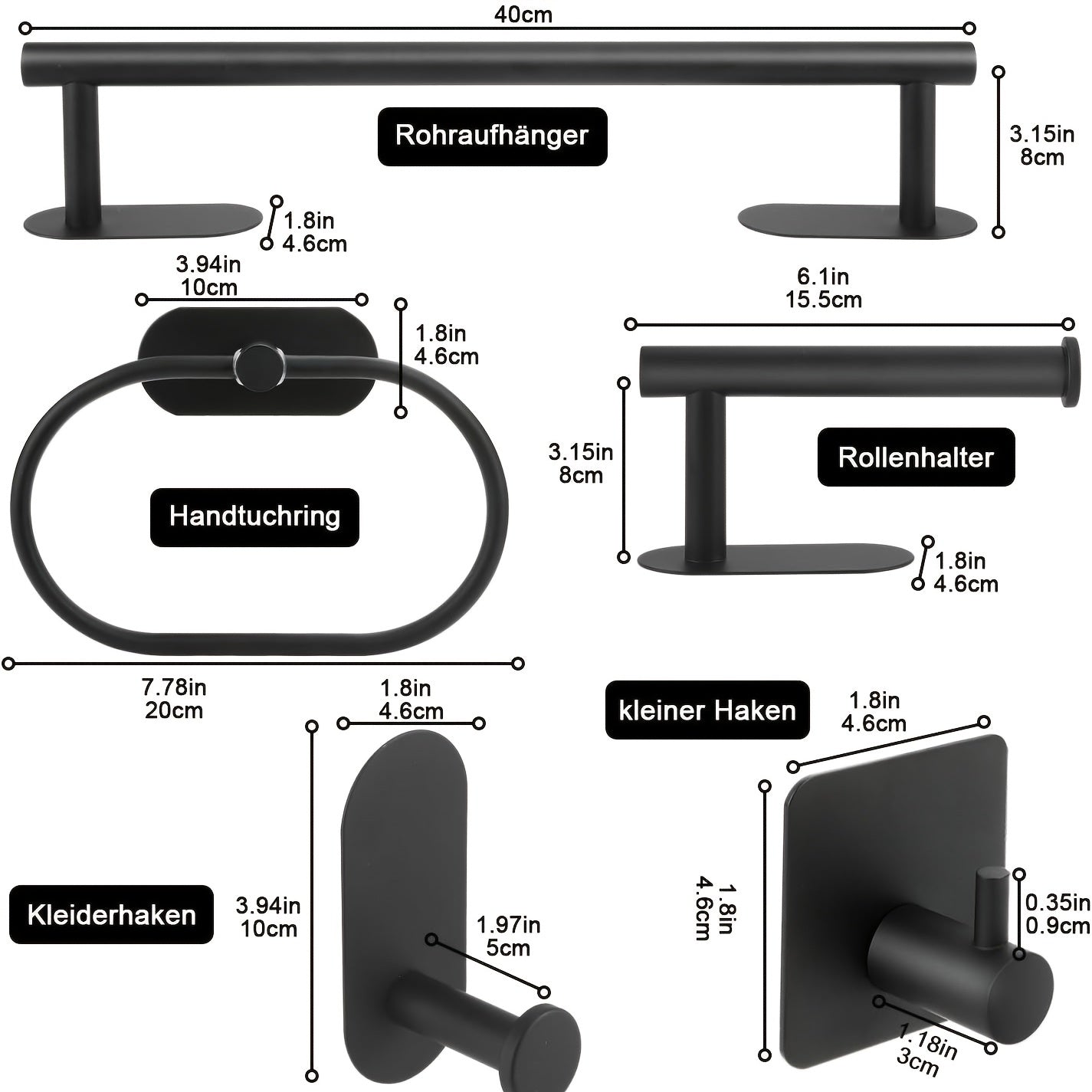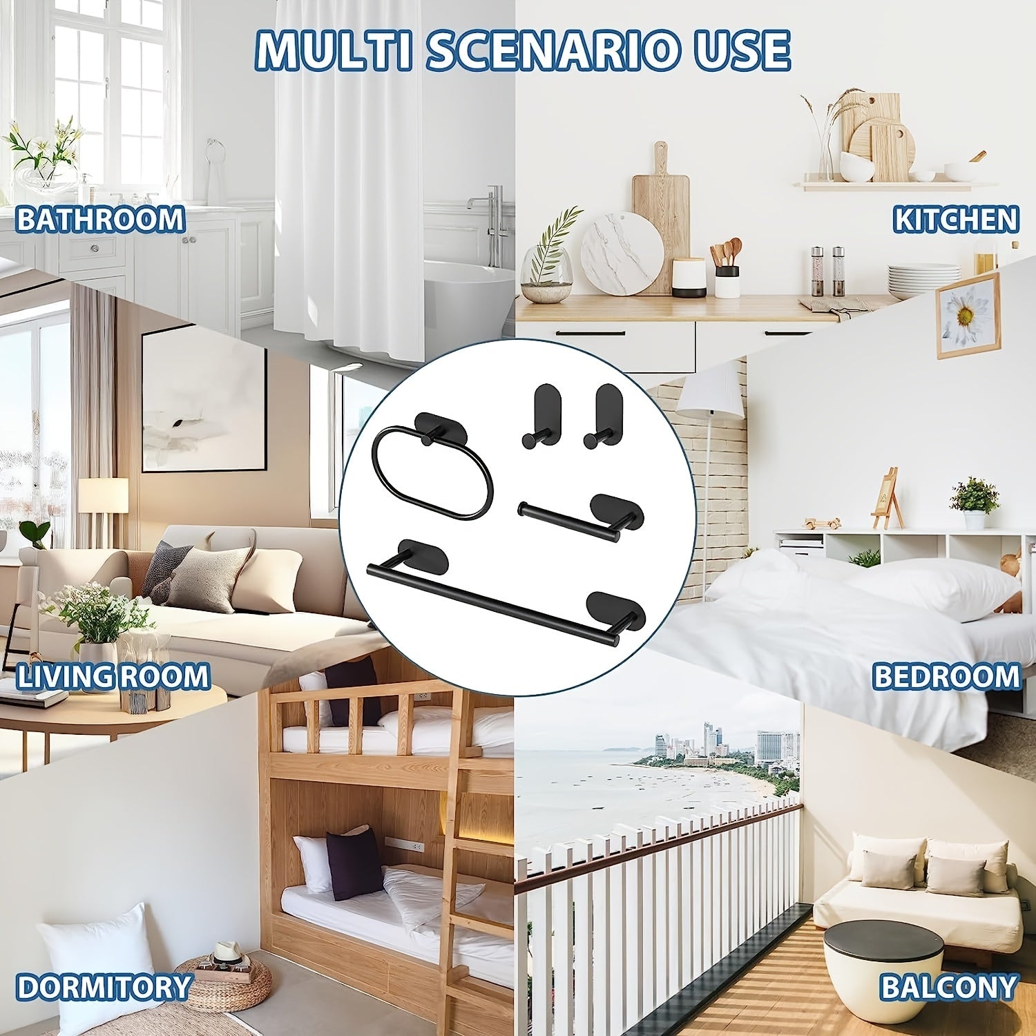 Stainless Steel Bathroom Hardware Set with Golden Accessories No Drilling
