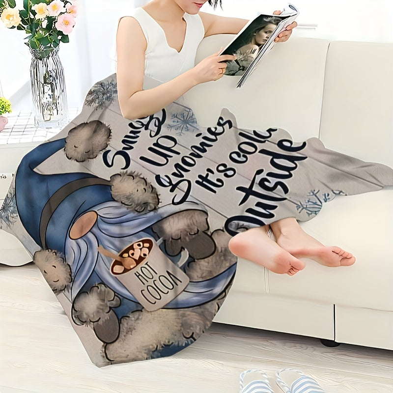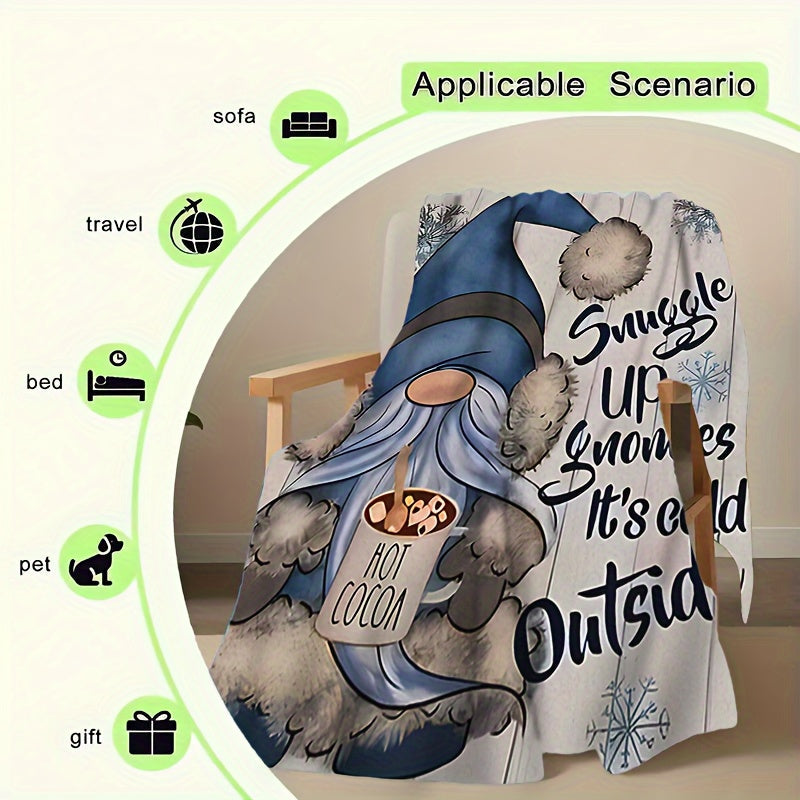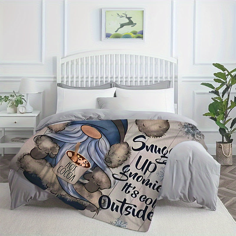 Cozy Christmas Gnome Santa Pattern Flannel Blanket Stain-Resistant Machine Washable