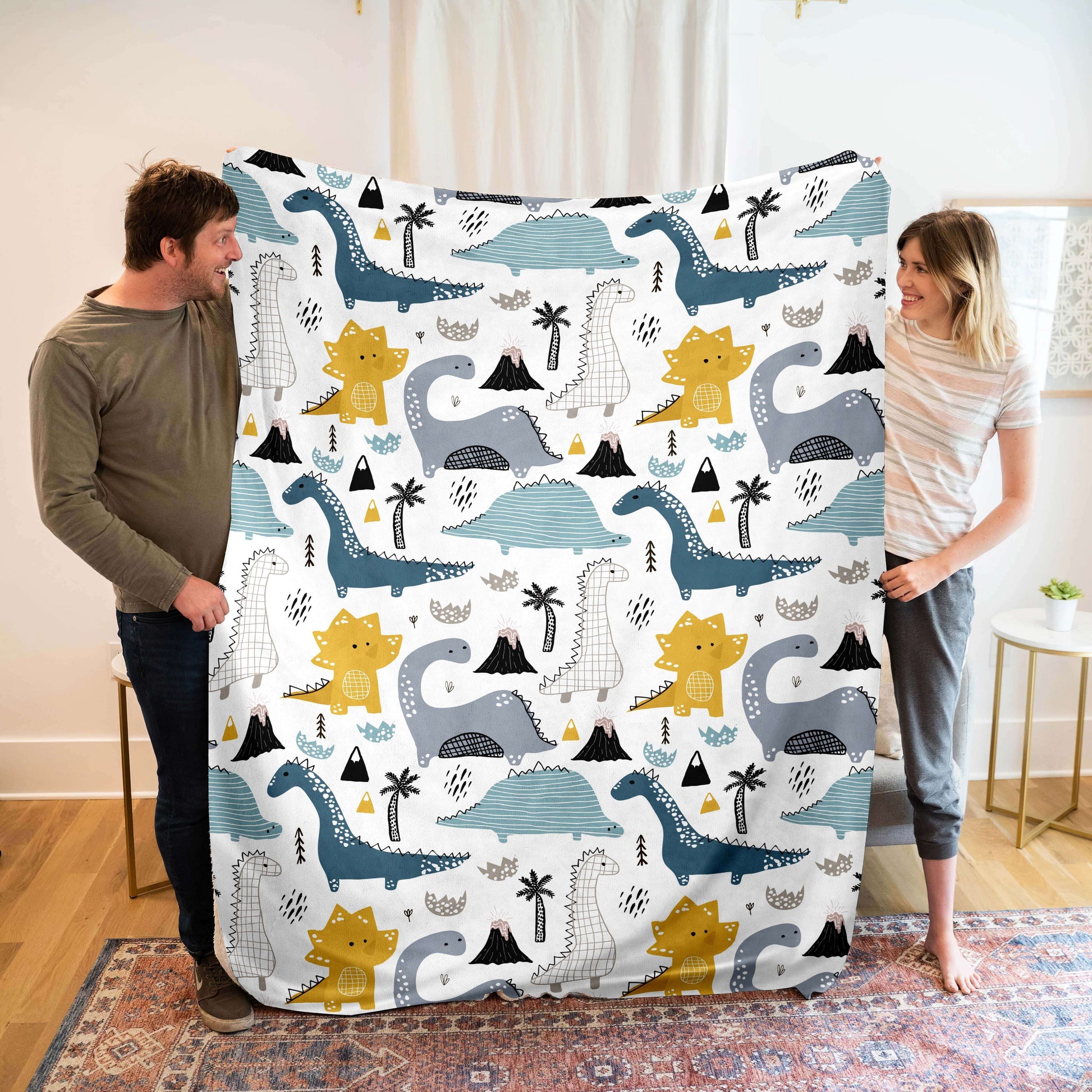 Kids Dinosaur Pattern Flannel Throw Blanket Soft Polyester Cuddle Blanket