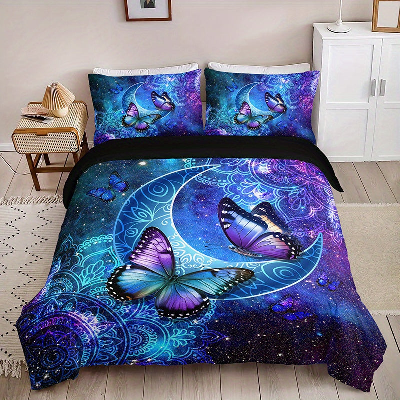 Butterfly Flower Digital Print Bedding Set 3-Piece Duvet Cover and Pillowcases