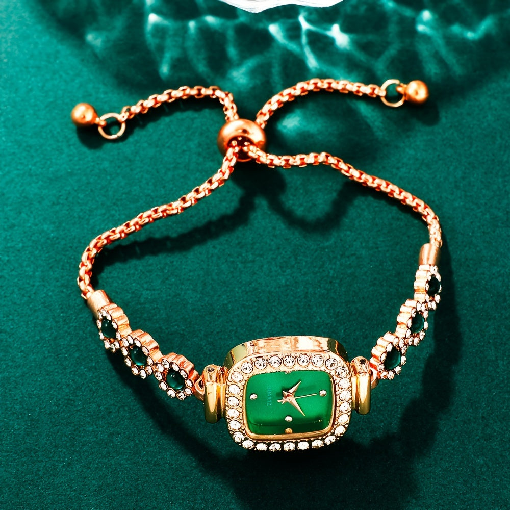 Women’s 6-Piece Rhinestone Quartz Watch Jewelry Set Square Case Adjustable Zinc Alloy Band Gift