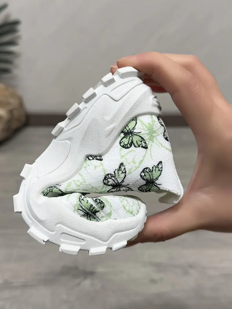 Girls Boys Toddler Butterfly Pattern Casual Sneakers Non-slip Fabric Low Top Running Hiking Outdoor