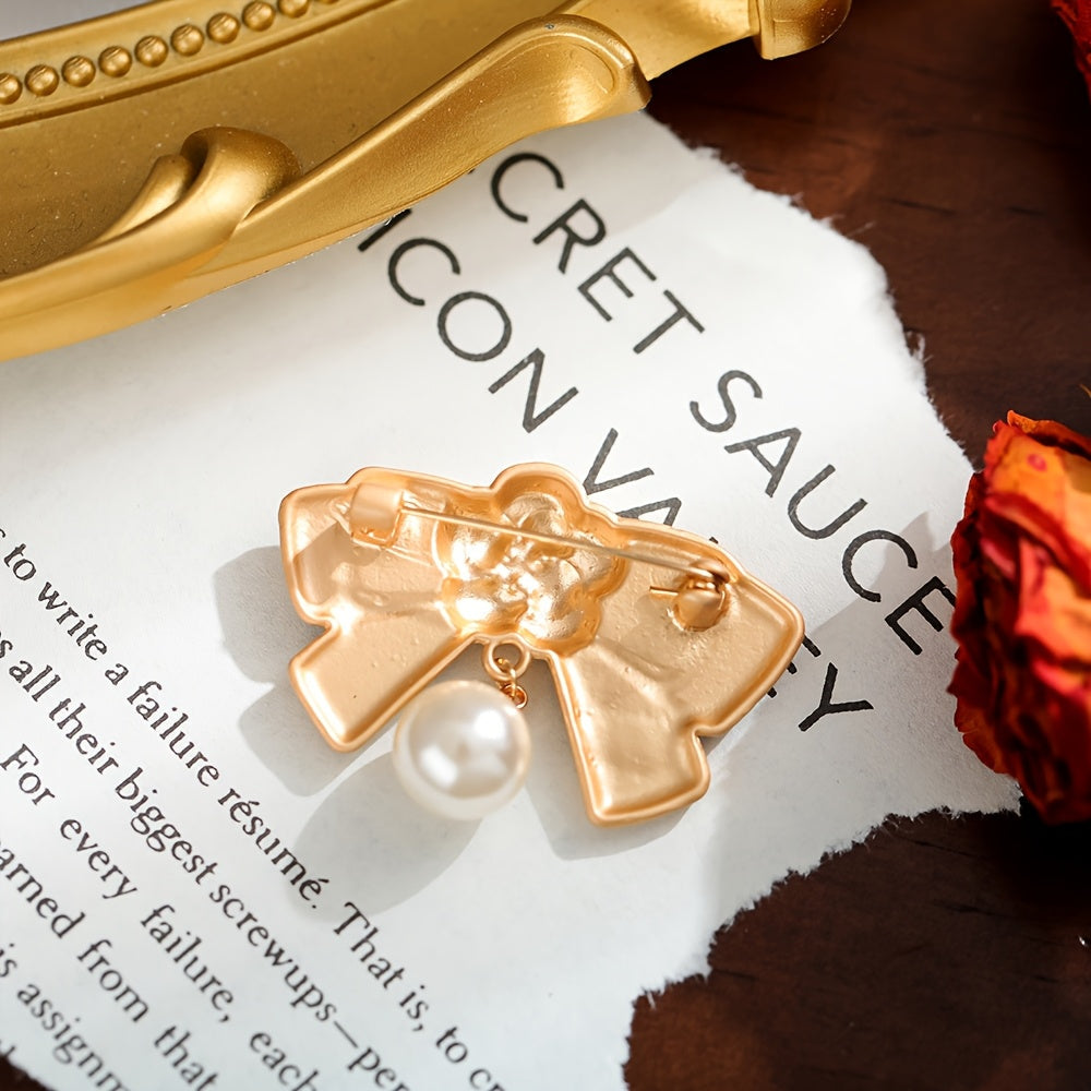 Vintage Style Camellia Brooch with Faux Pearl and Stainless Steel