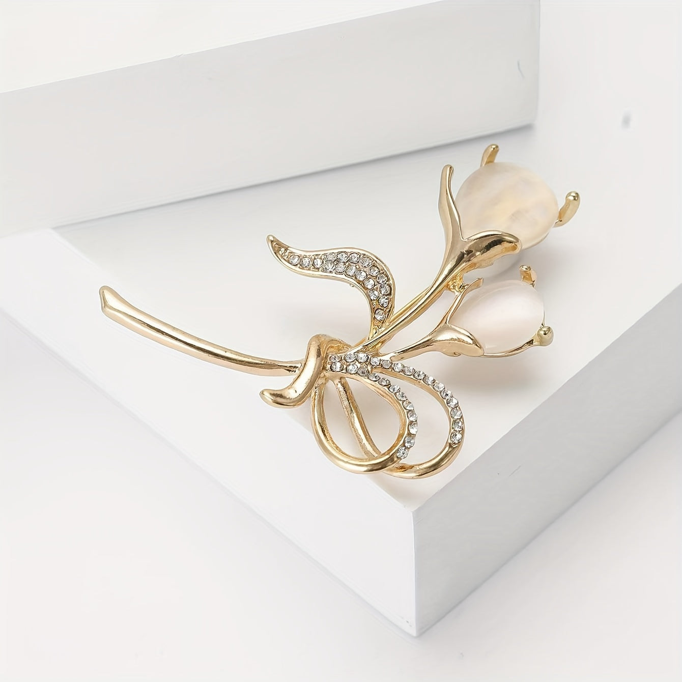 Women's Cat's Eye Stone Flower Brooch Elegant Alloy Jewelry Accessory
