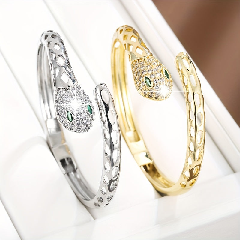 Women’s Copper Cuff Bracelet with Hollow Snake Design and Synthetic Zirconia
