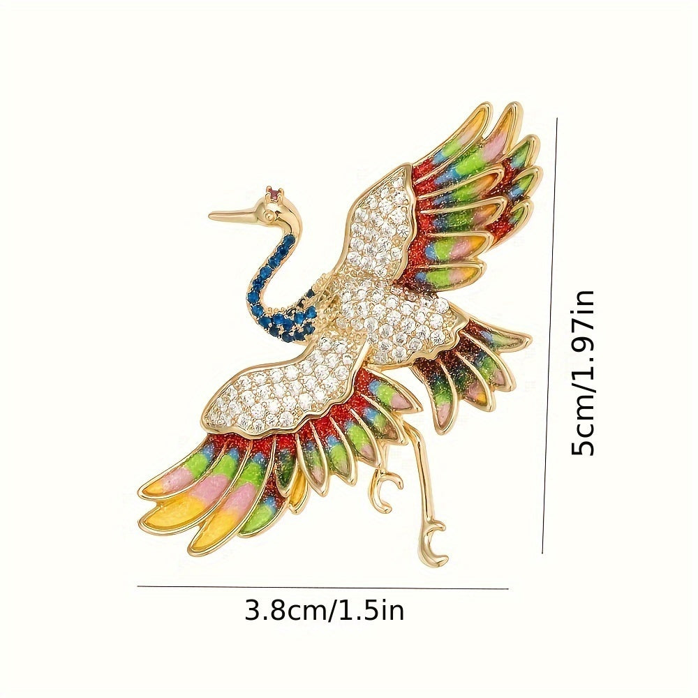 Enamel Crane Brooch Pin Animal Theme Jewelry for Cheongsam Suit Jackets Rhinestone Gold Tone