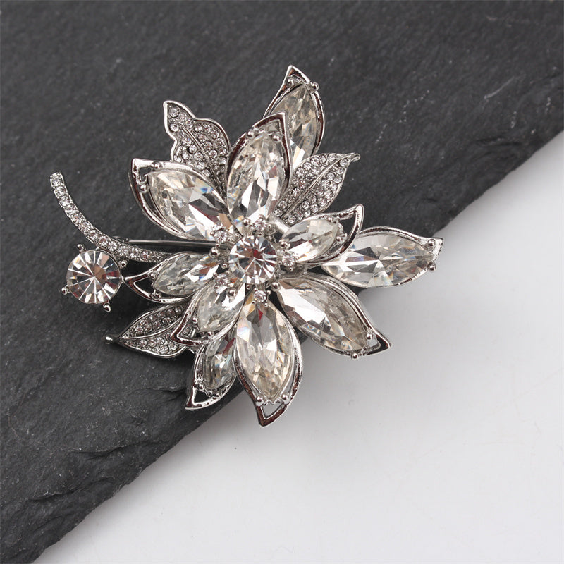 Women's Floral Brooch Pin with Rhinestones Irregular Shaped Flower Corsage Jewelry