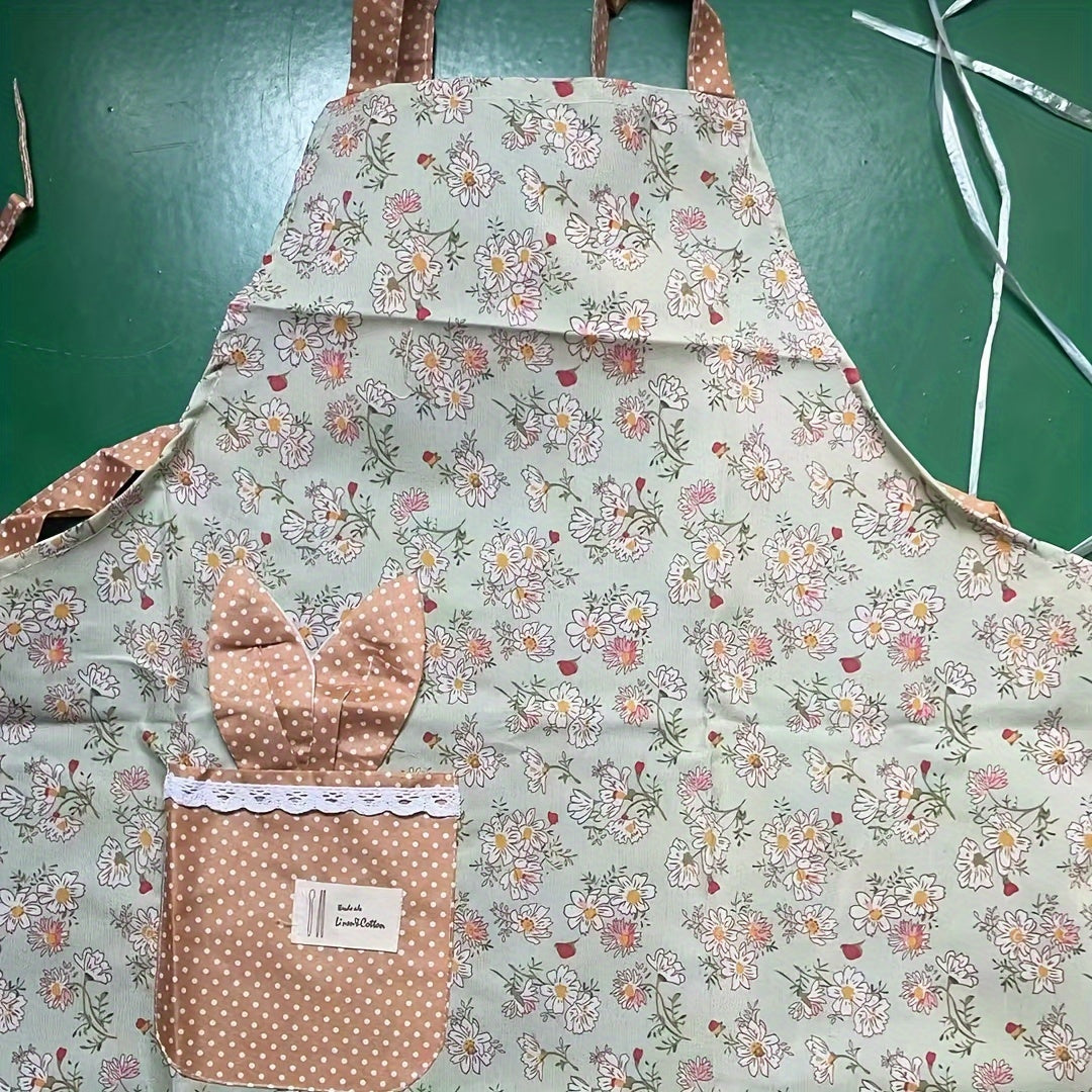 Floral Kitchen Apron Water-Resistant Stain-Resistant Polyester Cooking Apron
