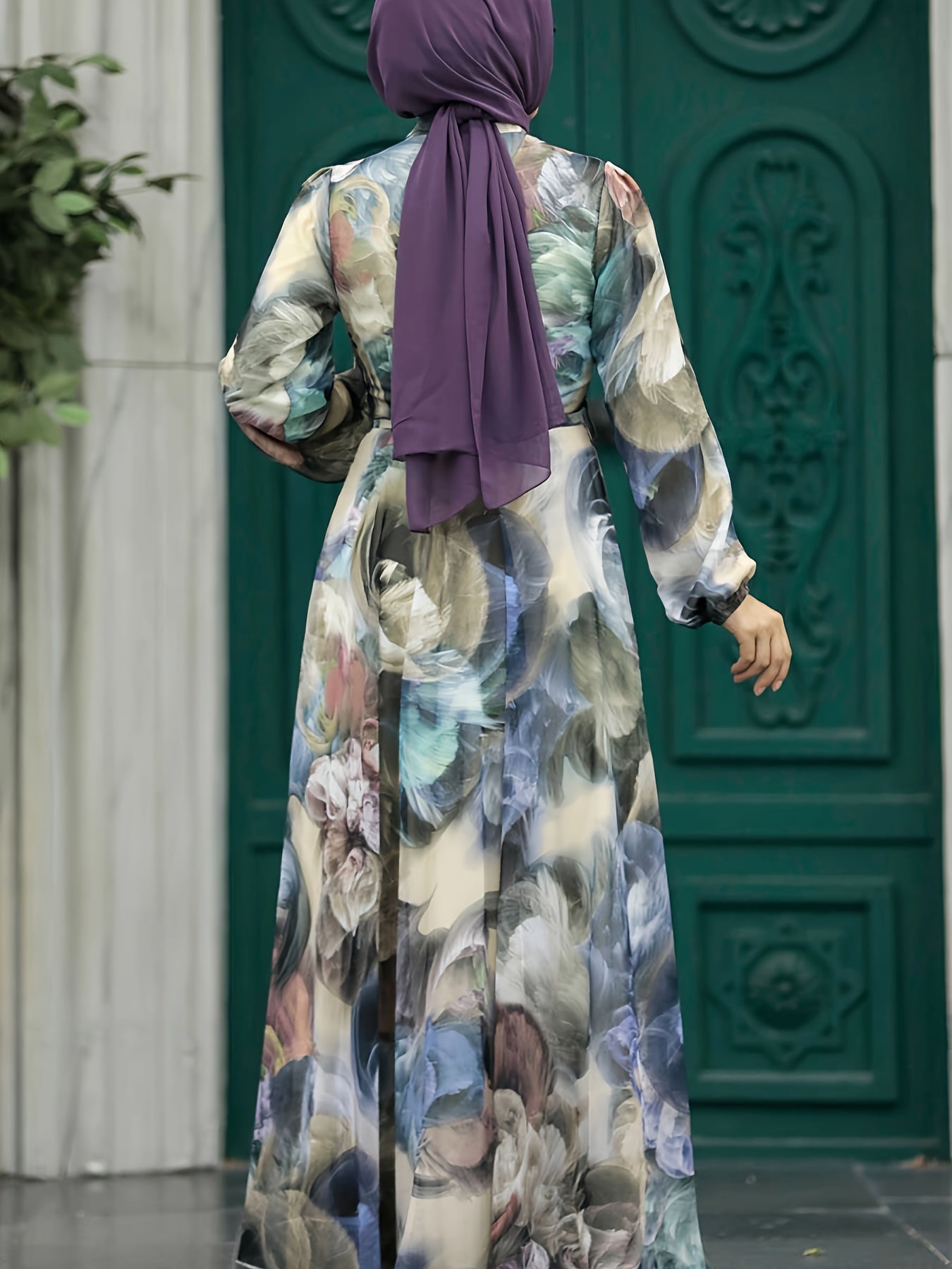Women's Floral Print Tie-Waist A-Line Dress Long Sleeve Crew Neck for Spring Summer