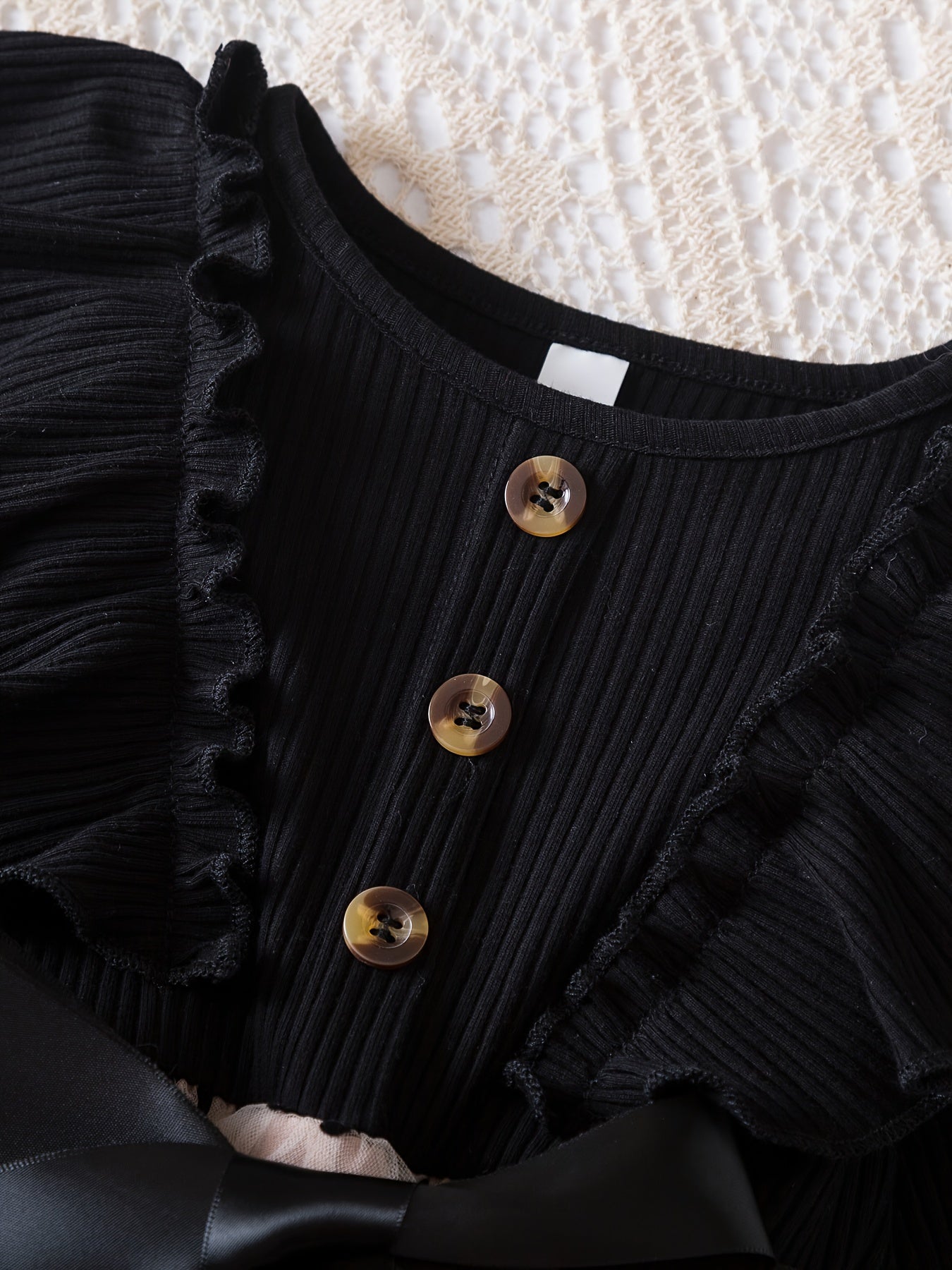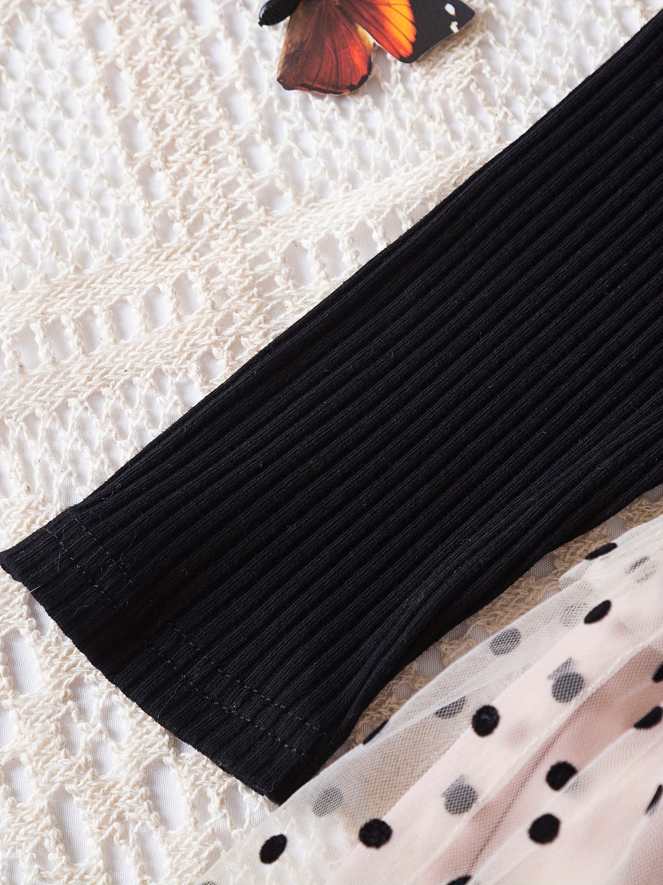 Girls Polka Dot Princess Dress with Mesh Layered Tutu for Fall Winter