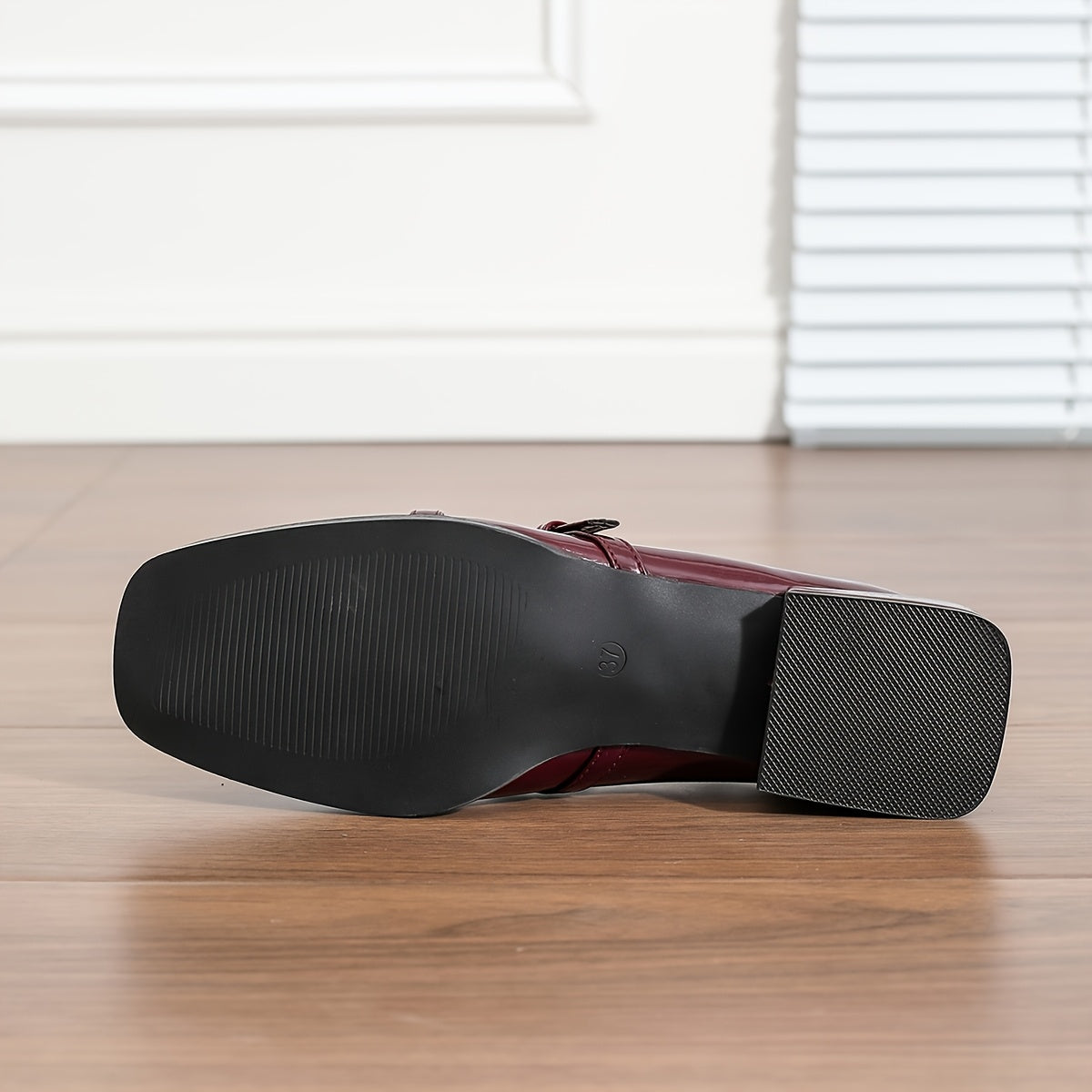 Women's Wine Red Loafers with Single Strap Square Toe All-Season Penny Loafer