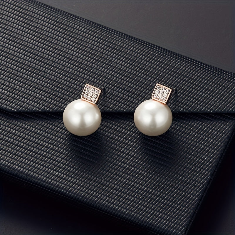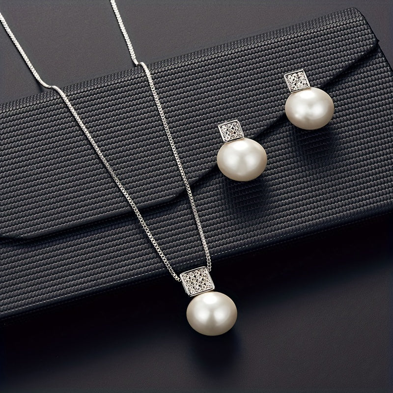 Women's Imitation Pearl Necklace and Earring Set with Rhinestone Pendant for Birthdays and Parties
