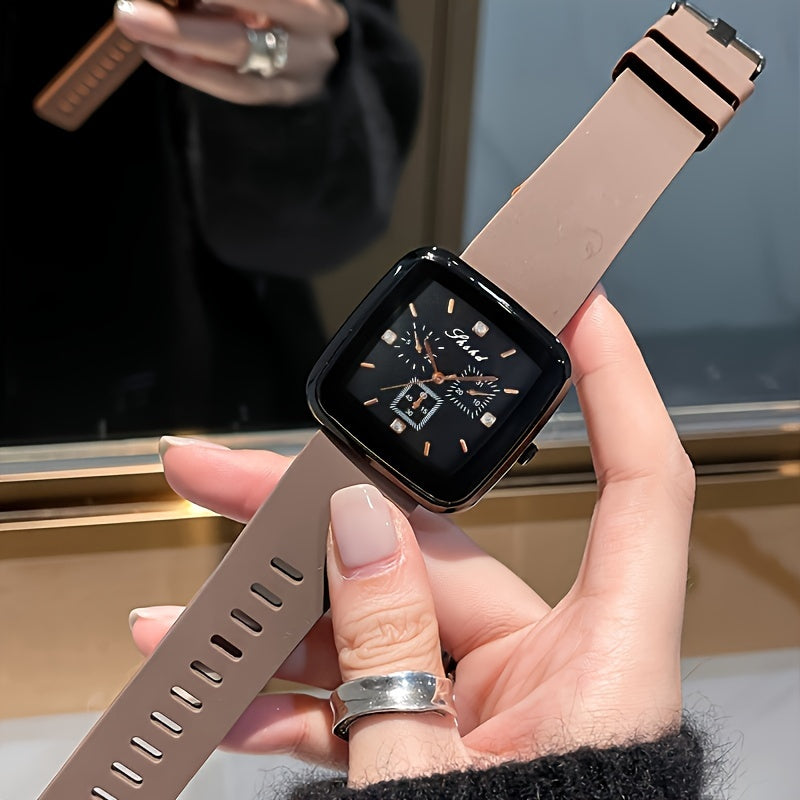 Women's Quartz Wristwatch with Plastic Case and Silicone Strap