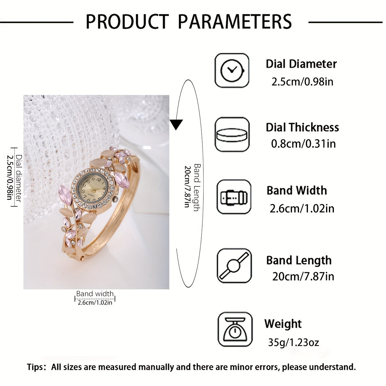 Women's Quartz Watch with Pink Gemstones and Rhinestone Jewelry Set