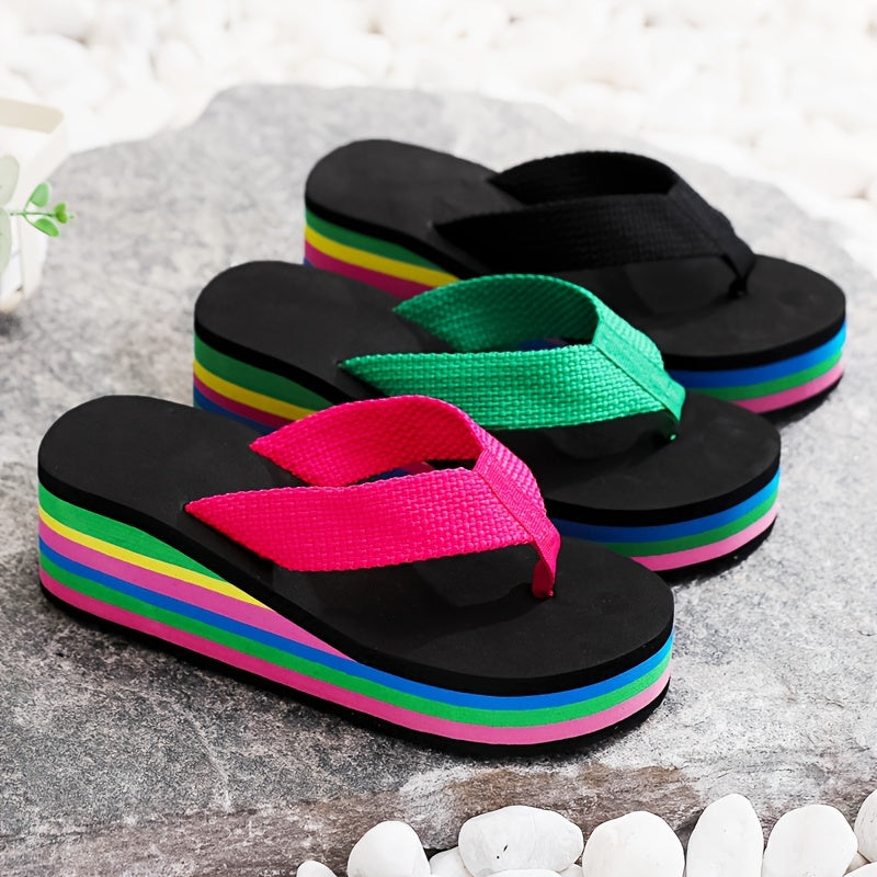 Women's Summer Flip Flops with High Heels and Rainbow Sole for Seaside Vacation