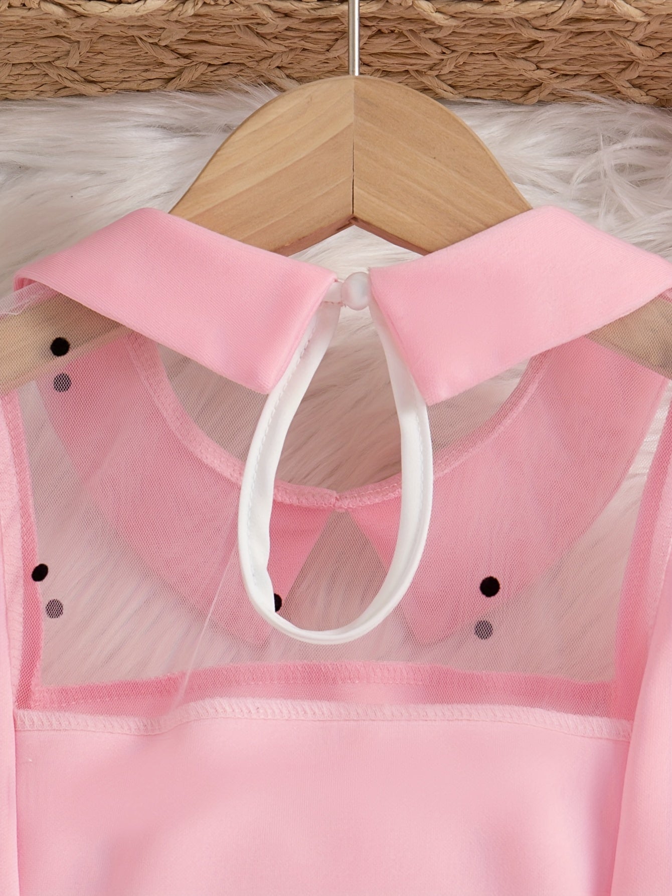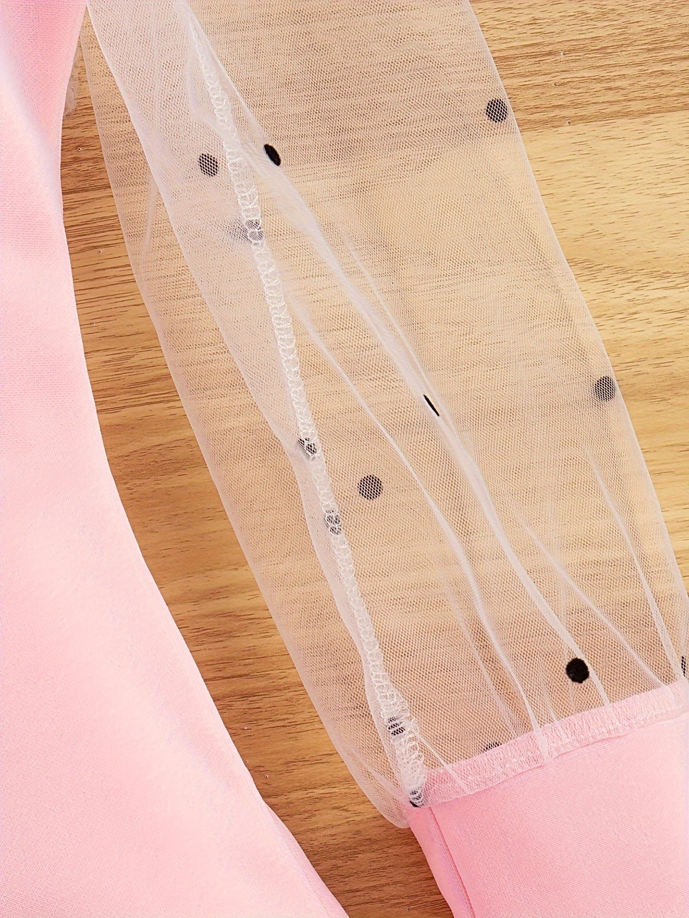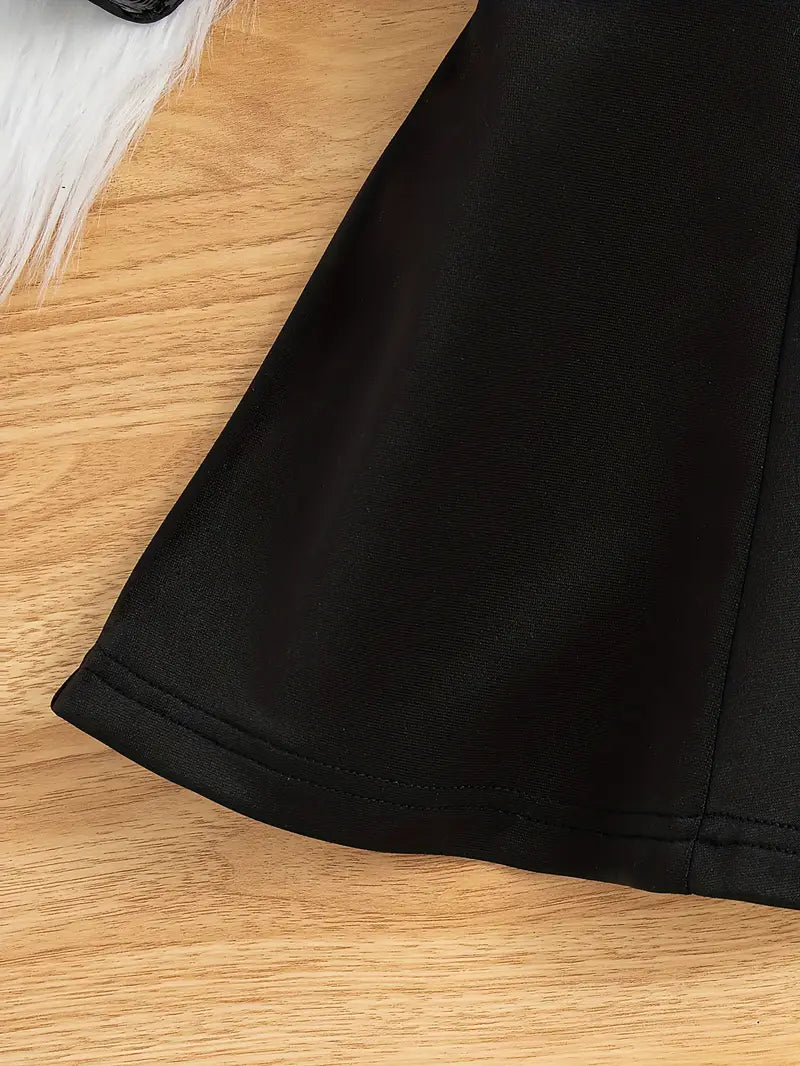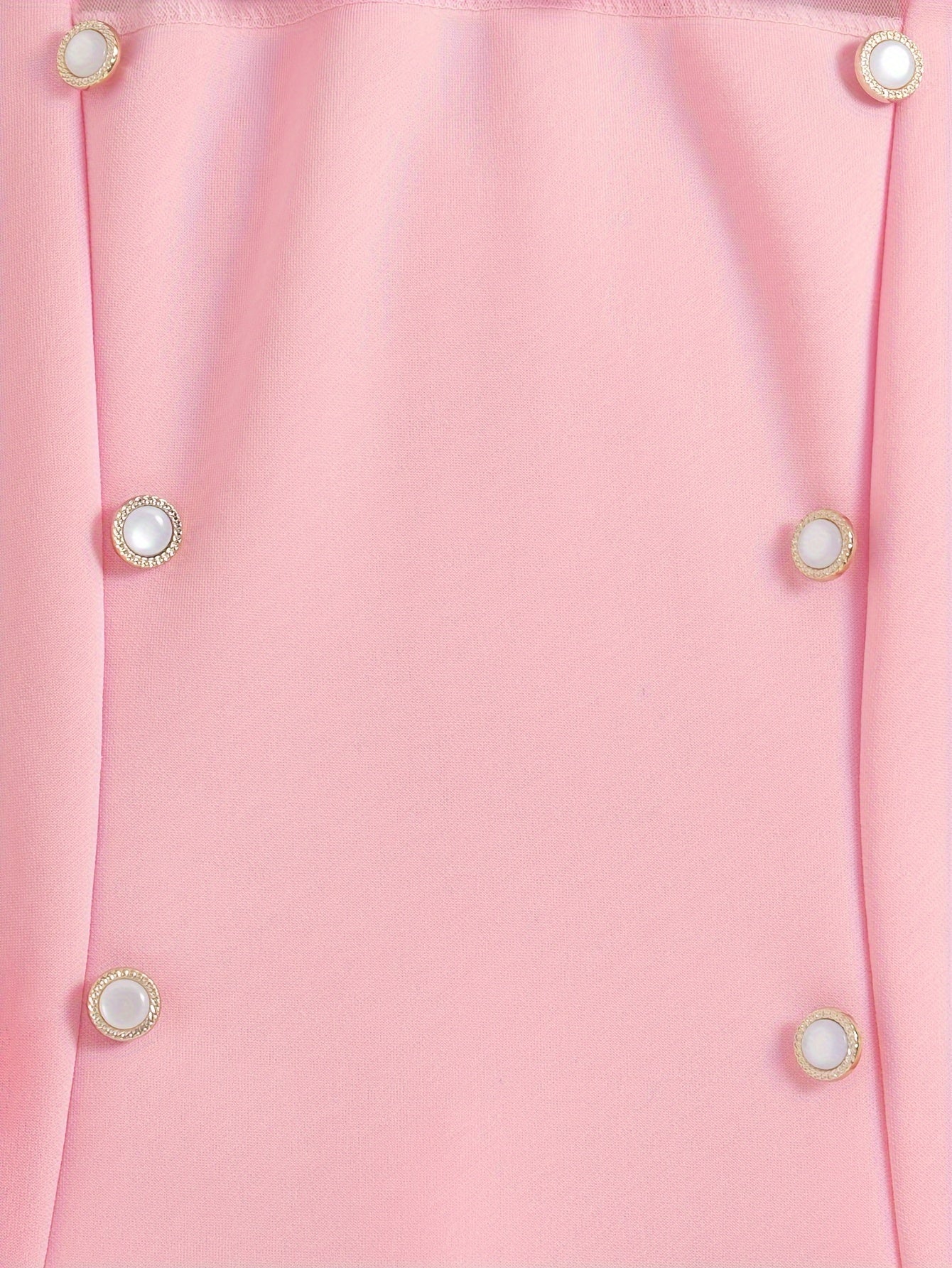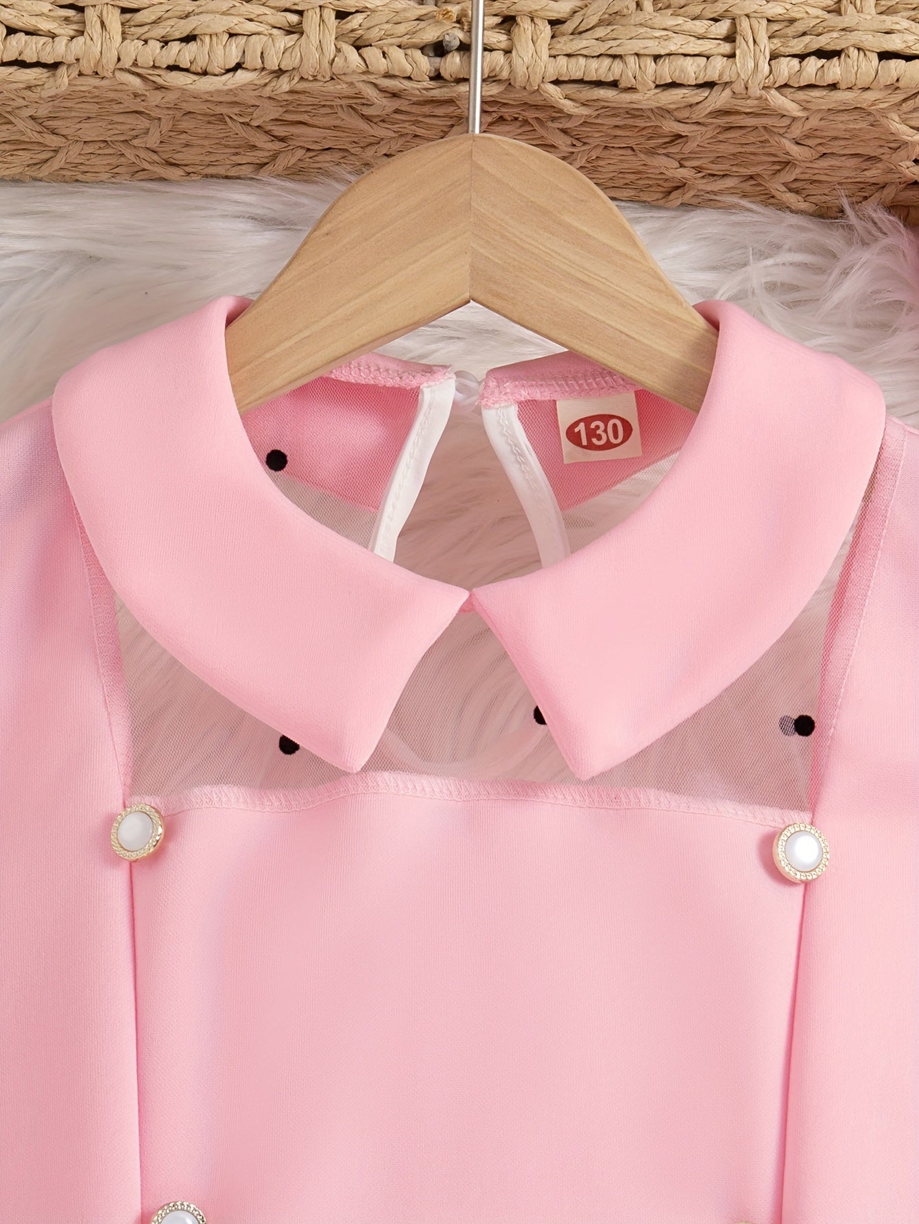 Girls Midi Dress with Mesh Overlay Long Sleeves Solid Color Summer Fashion Fake Buttons