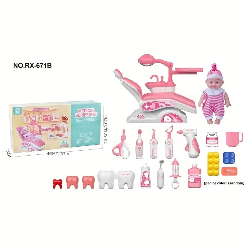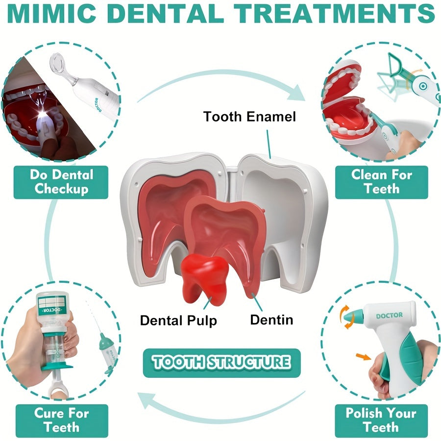 Kids Dentist Playset 17-Piece Green Pretend Doctor Toy Kit for Ages 3-5
