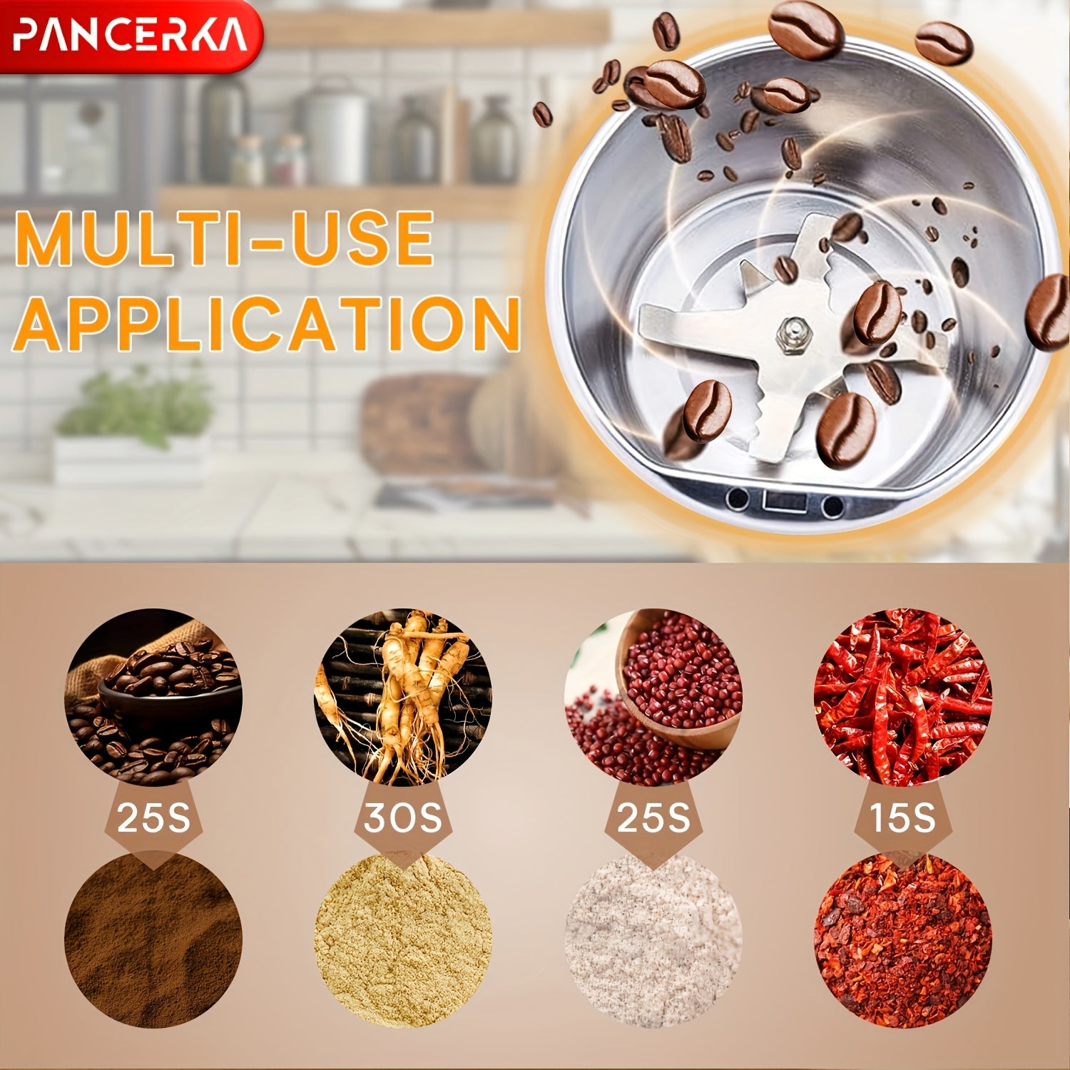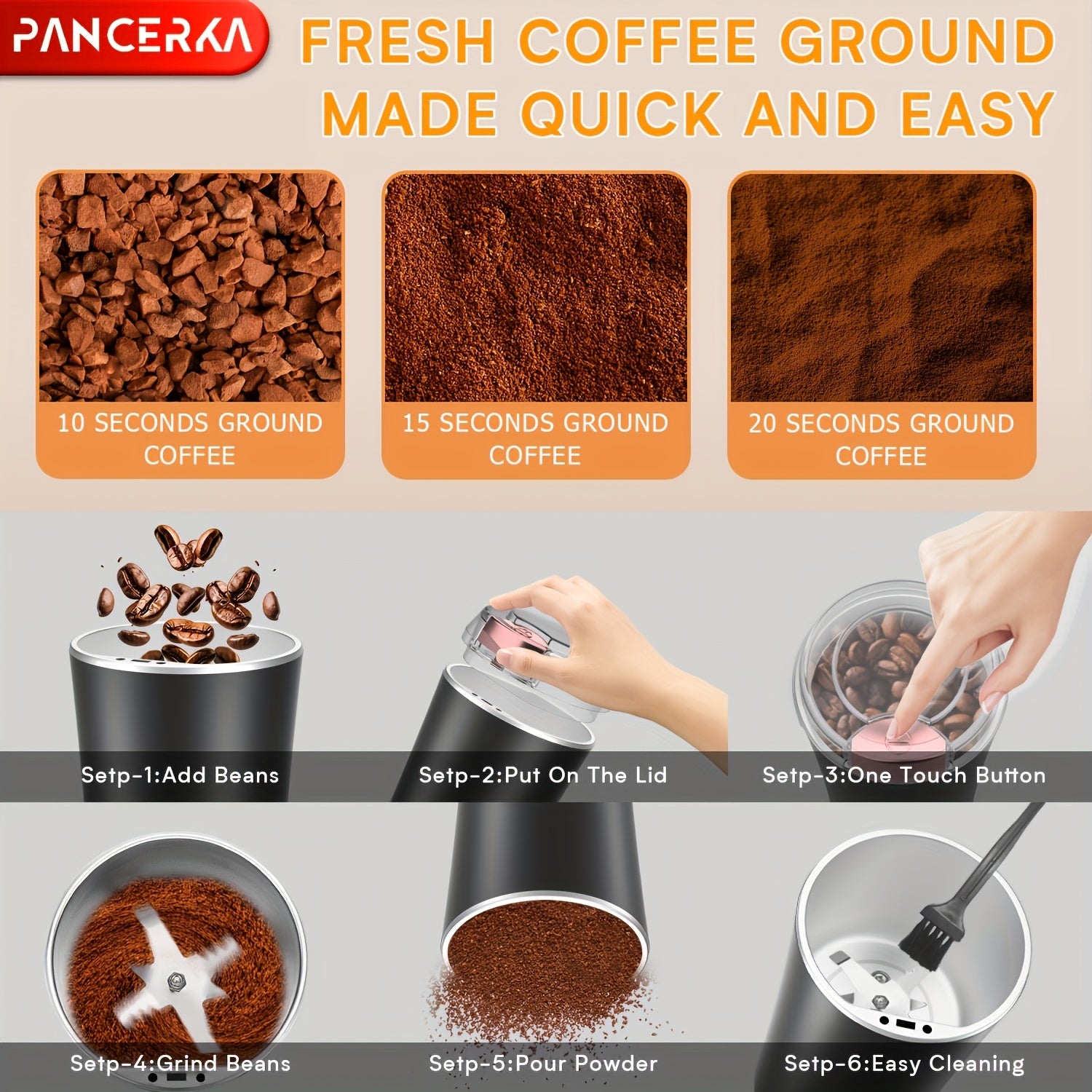 Electric Coffee Grinder Stainless Steel Blades Large Capacity Compact Black