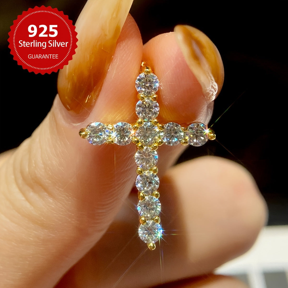 Sterling Silver Mozambique Stone Cross Pendant Necklace 1.1 Carat Jewelry Gift