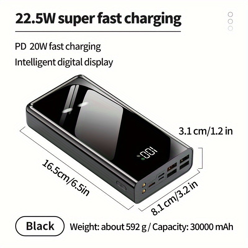 30000mAh Ultra-Thin Portable Power Bank Fast Charging LED Flashlight Compatible with iPhone Android Digital Devices