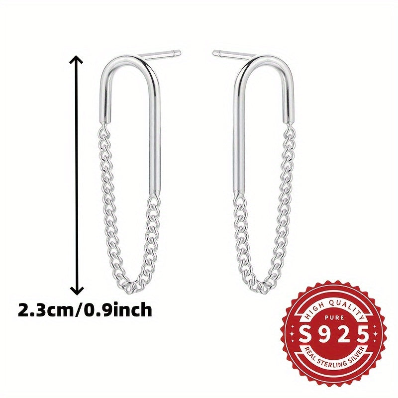 Women's S925 Silver Earrings U-Shaped Chain Tassel Pendant Stylish Jewelry