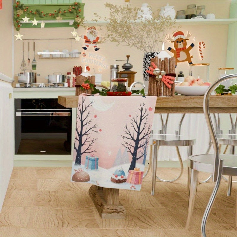 Christmas Kitchen Towel 18x66cm Reusable Festive Dish Cloth for Holiday Cooking