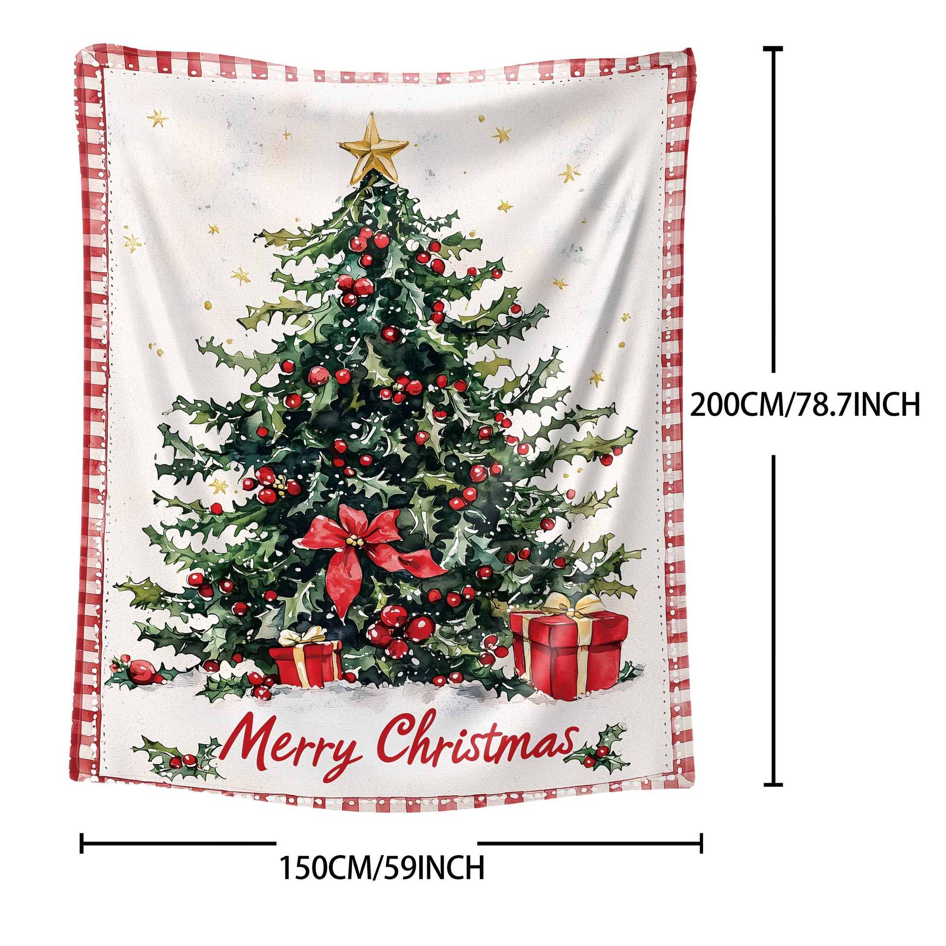 Flannel Throw Blanket Christmas Tree Design Soft Knitted Polyester All-Season Cozy