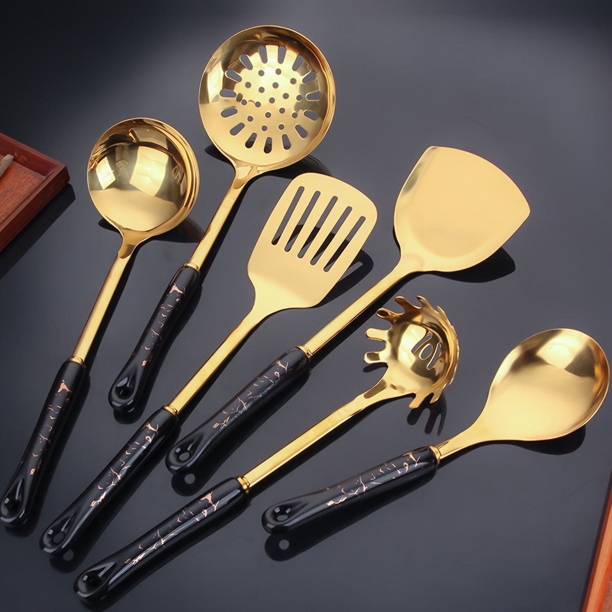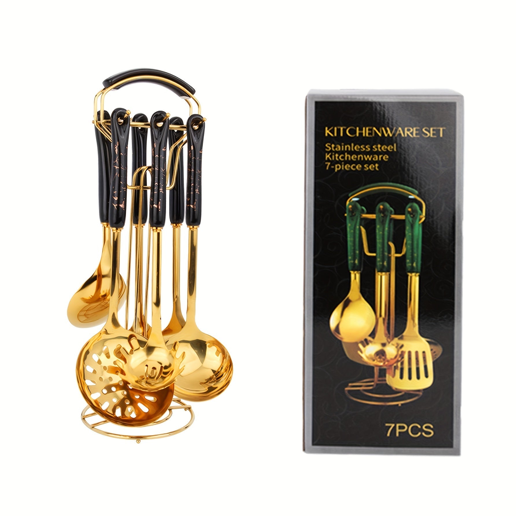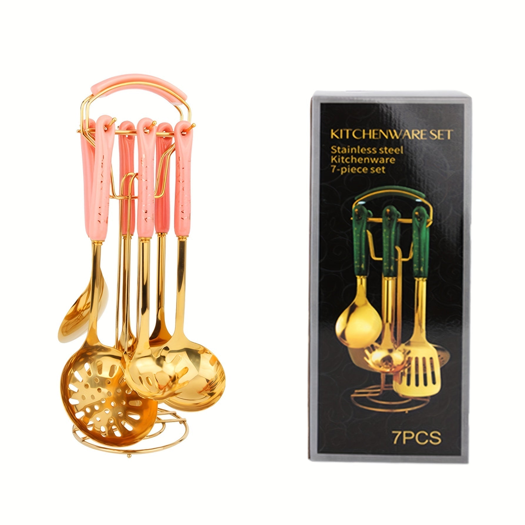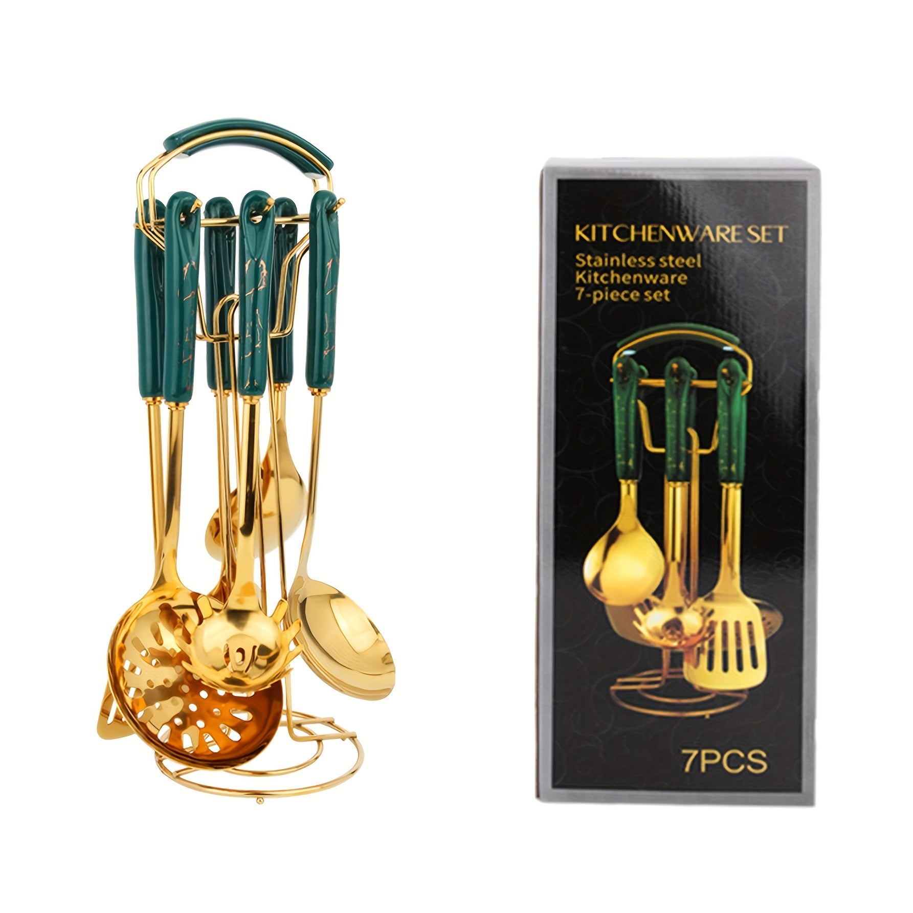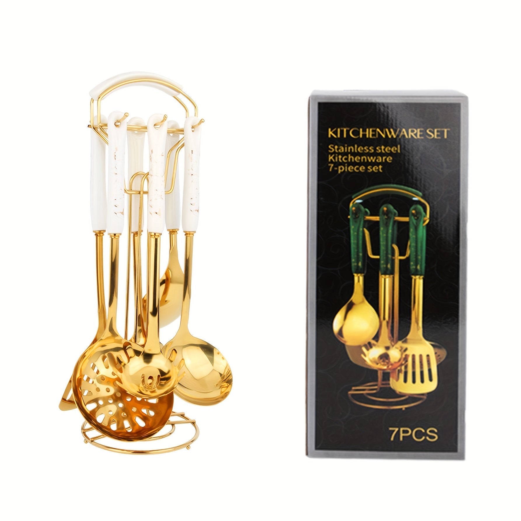 Nordic Stainless Steel Kitchen Utensil Set with Ceramic Handles, 7 Pieces