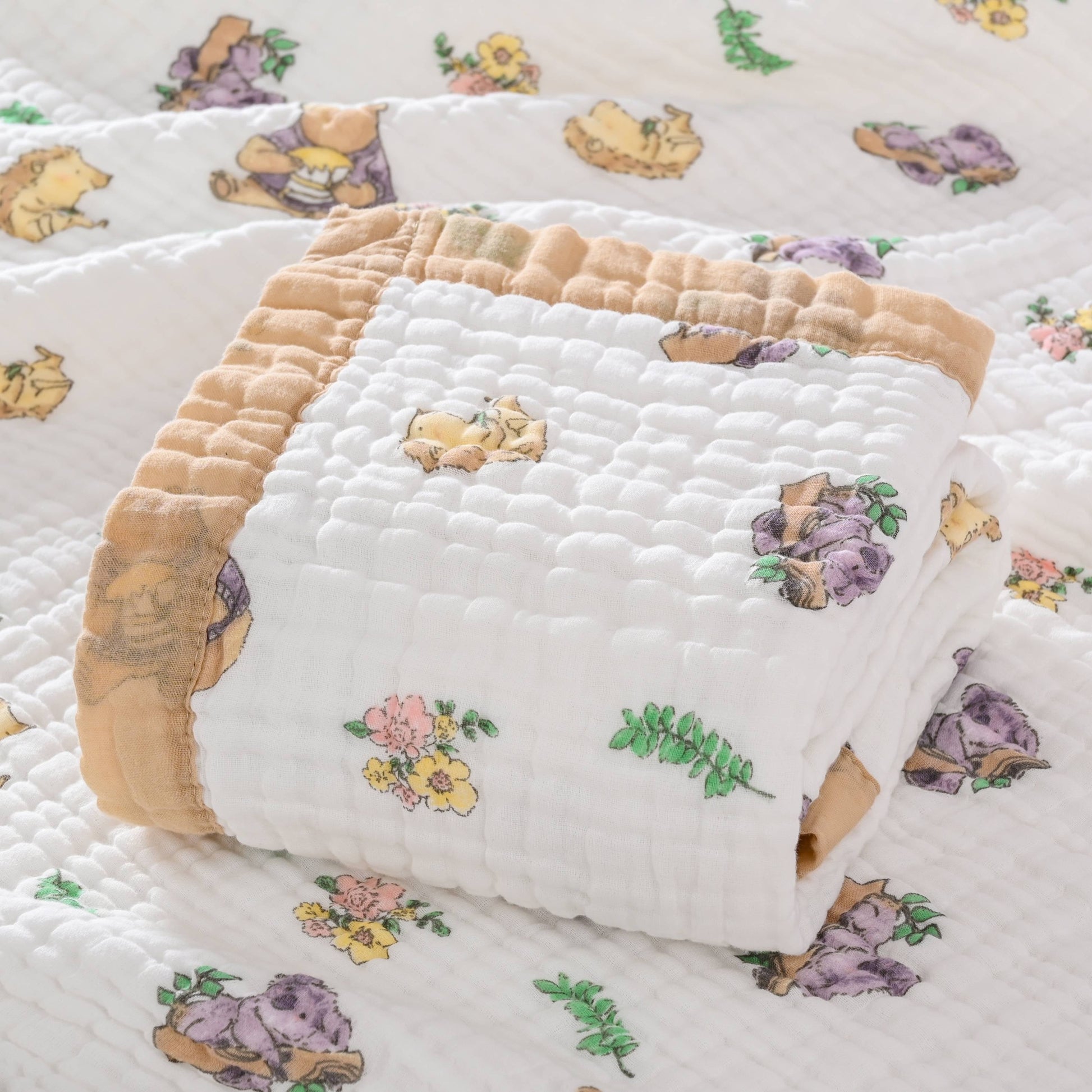Cotton Gauze Throw Blanket with Cartoon Pattern Hypoallergenic Stain-Resistant for Bed Bath Office