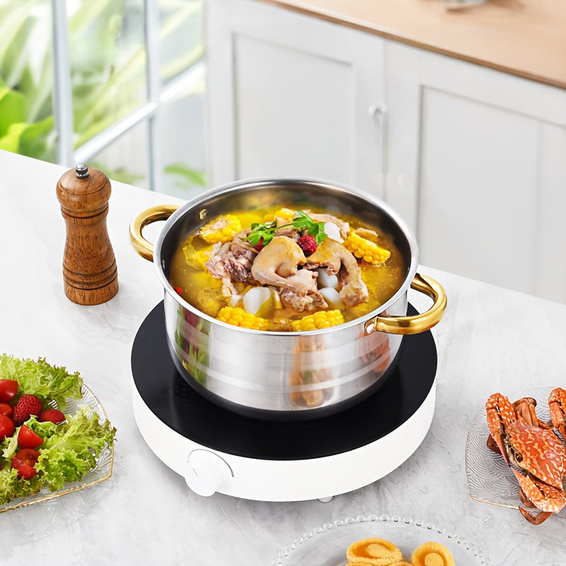 10-Piece Stainless Steel Cookware Set with Double Handles and Lids for Soup Stew Pasta