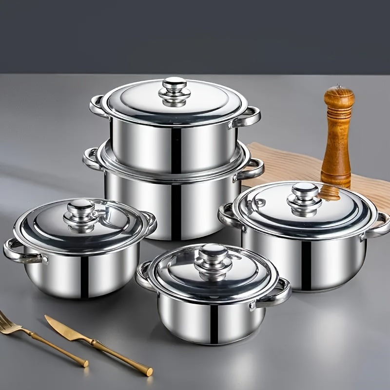 10-Piece Stainless Steel Cookware Set with Lids, Silver, Various Sizes