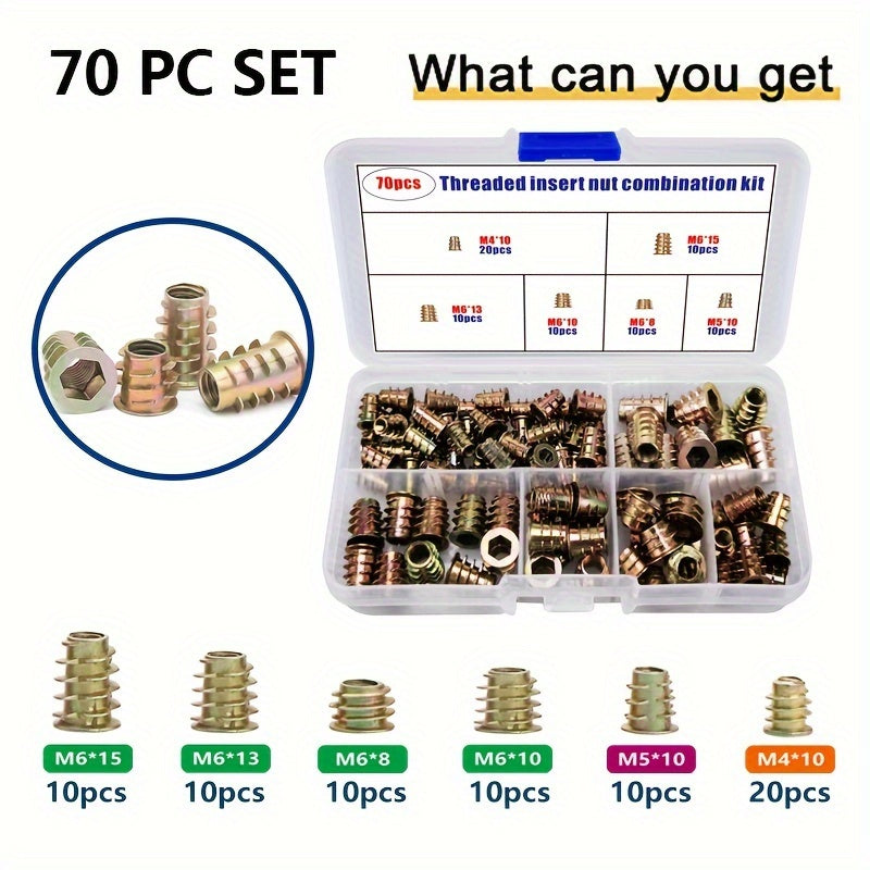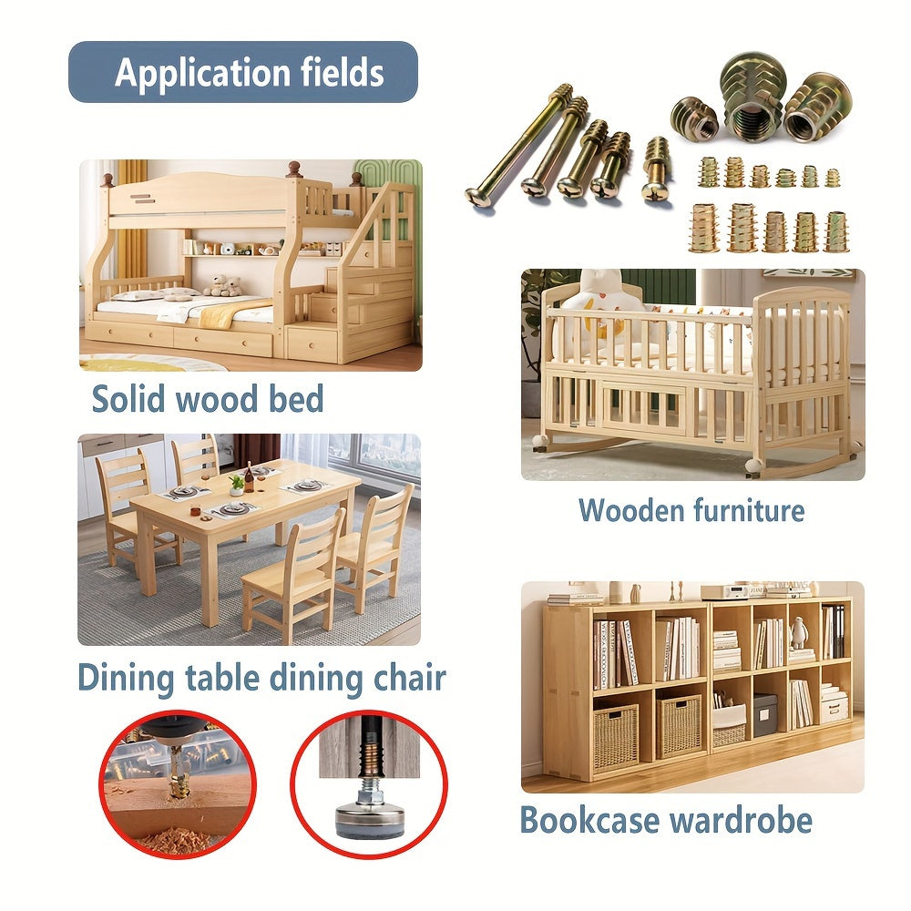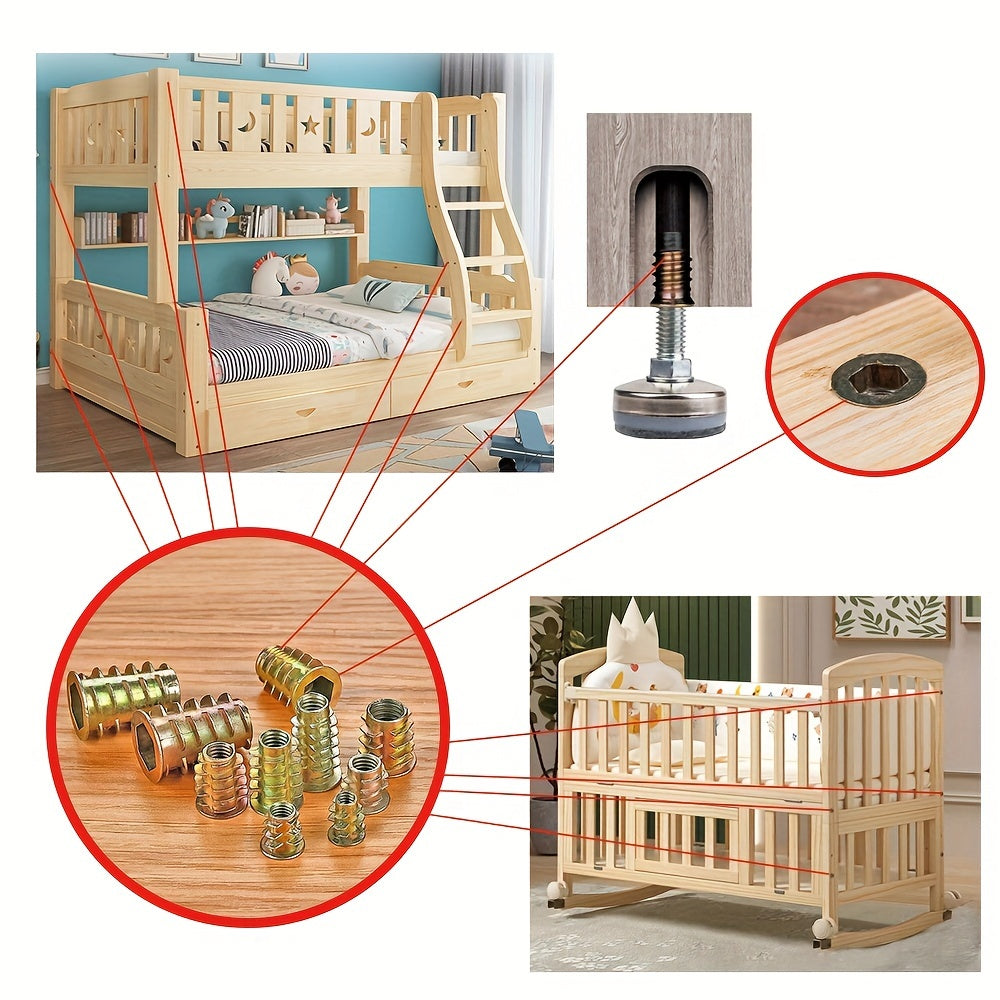 Threaded Inserts Nut Kit for Wood Furniture Zinc Alloy Bolt Fasteners