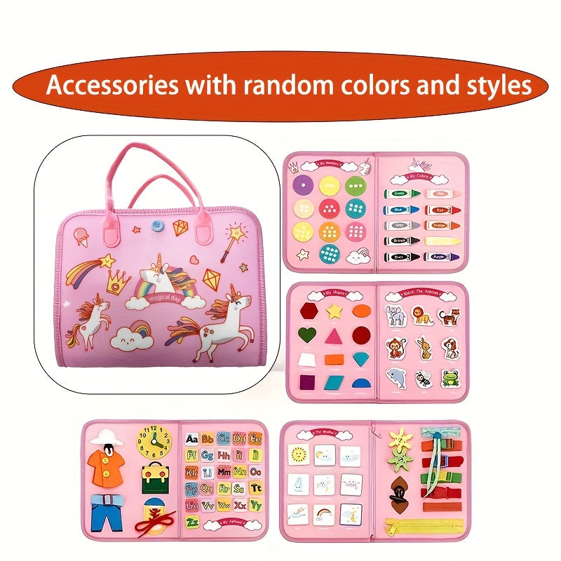 Pink Blue 3-Layer Animal Busy Board Educational Toy for Kids