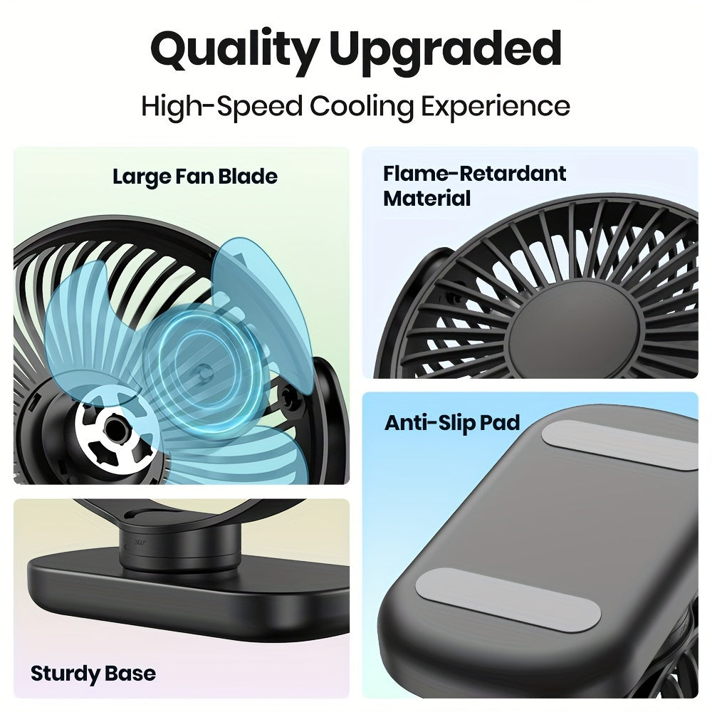 Personal USB Clip Desk Fan with Powerful Airflow, Whisper-Quiet, Portable, Adjustable Clamp
