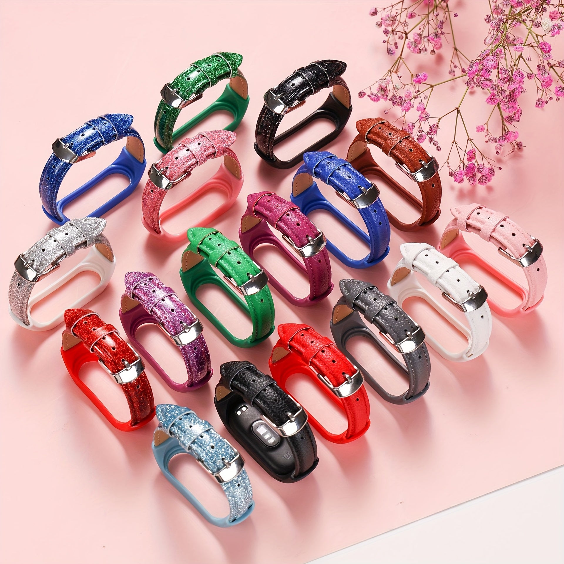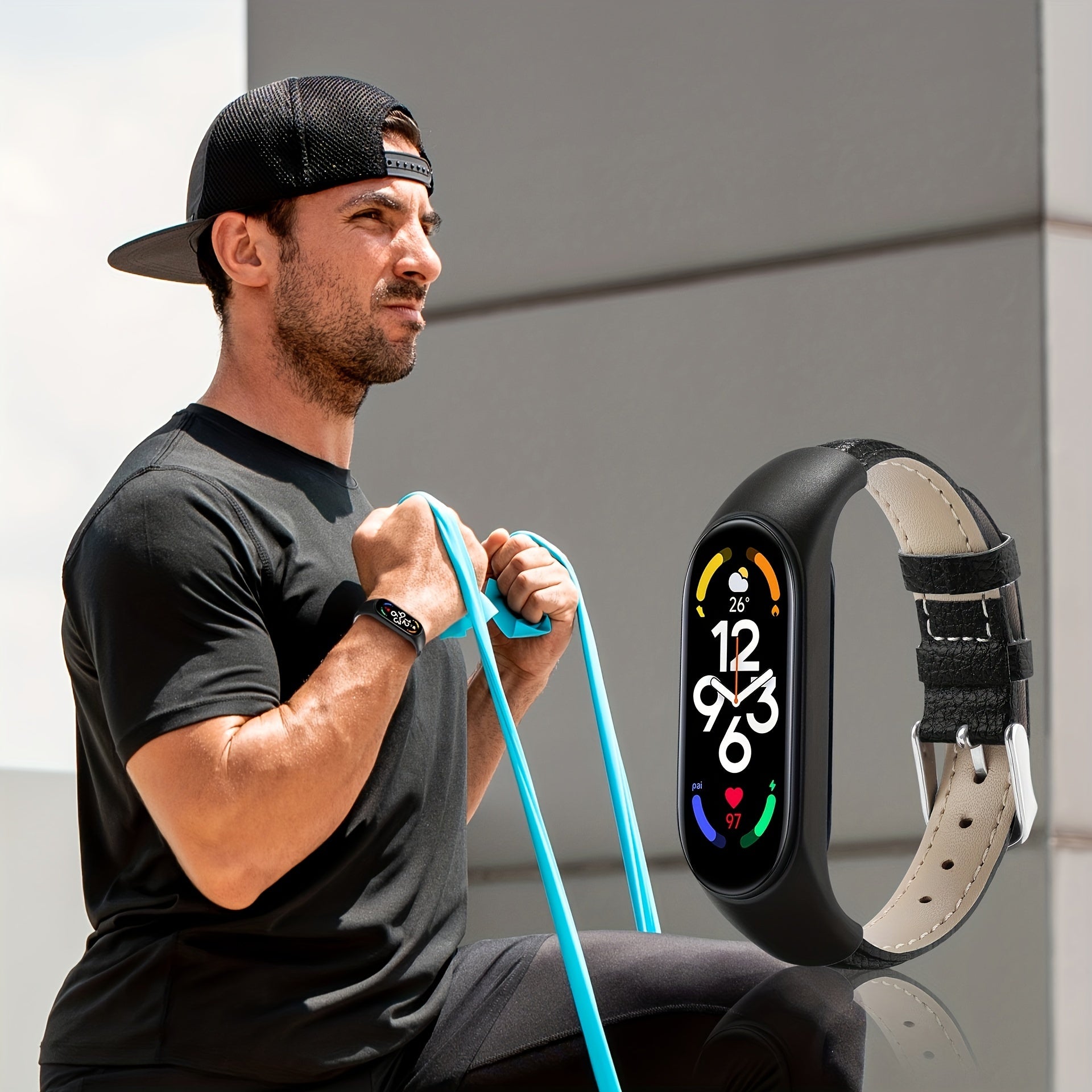 Smartwatch Strap for Xiaomi Mi Band 3 4 5 6 7 Synthetic Leather Adjustable Buckle Black Brown White