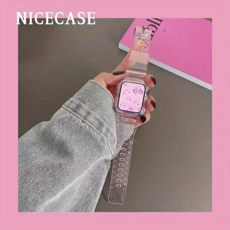Transparent Silicone Watch Band with Integrated Case for Apple Watch Ultra/SE/Series 1-9 40-49mm