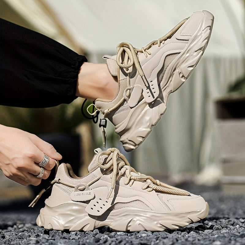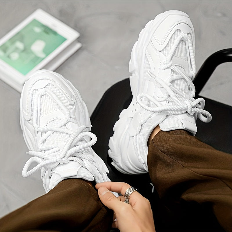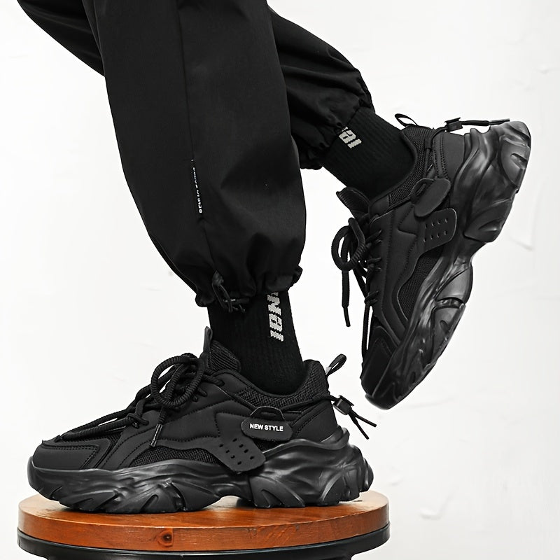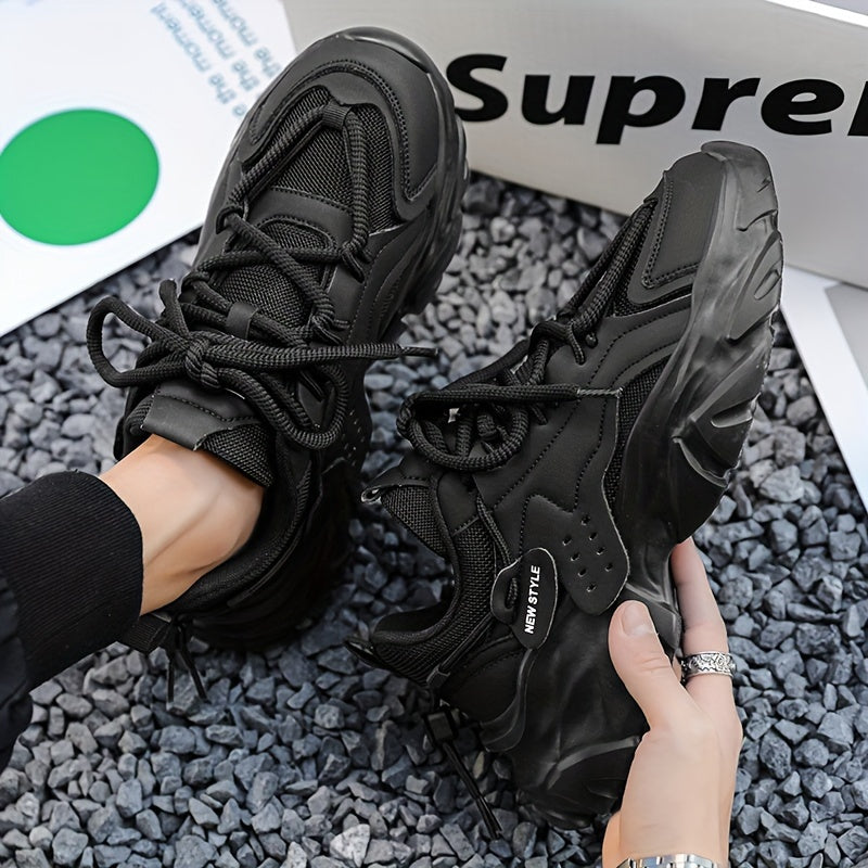 Men's Solid Color Breathable Running Sneakers with Thick Bottom for Training and Fitness